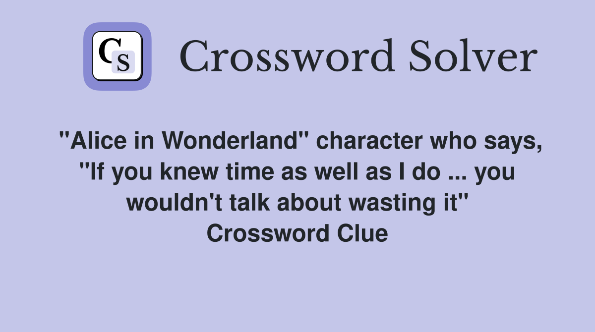 quot Alice in Wonderland quot character who says quot If you knew time as well as