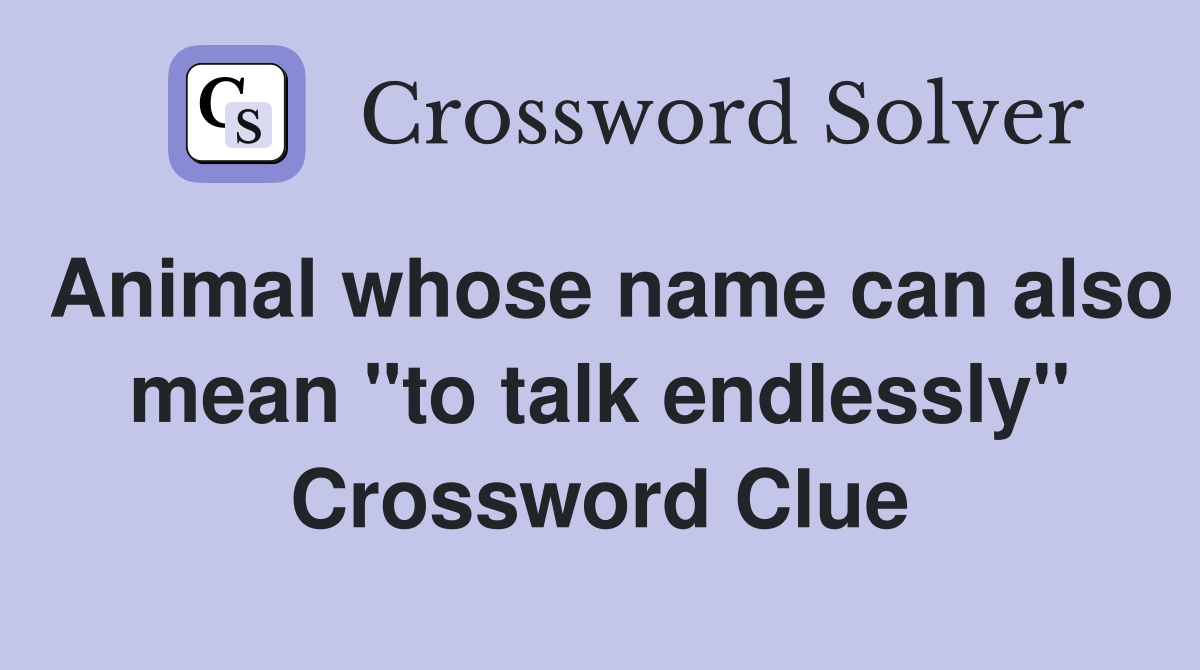Animal whose name can also mean quot to talk endlessly quot Crossword Clue