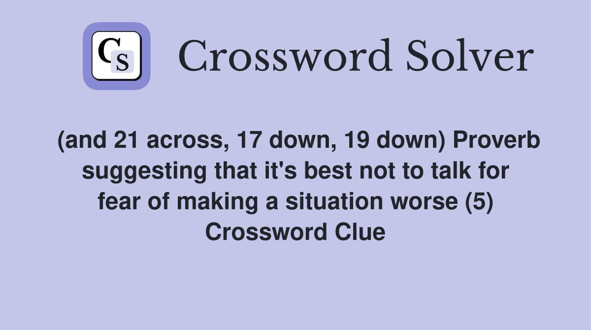 (and 21 across 17 down 19 down) Proverb suggesting that it #39 s best not