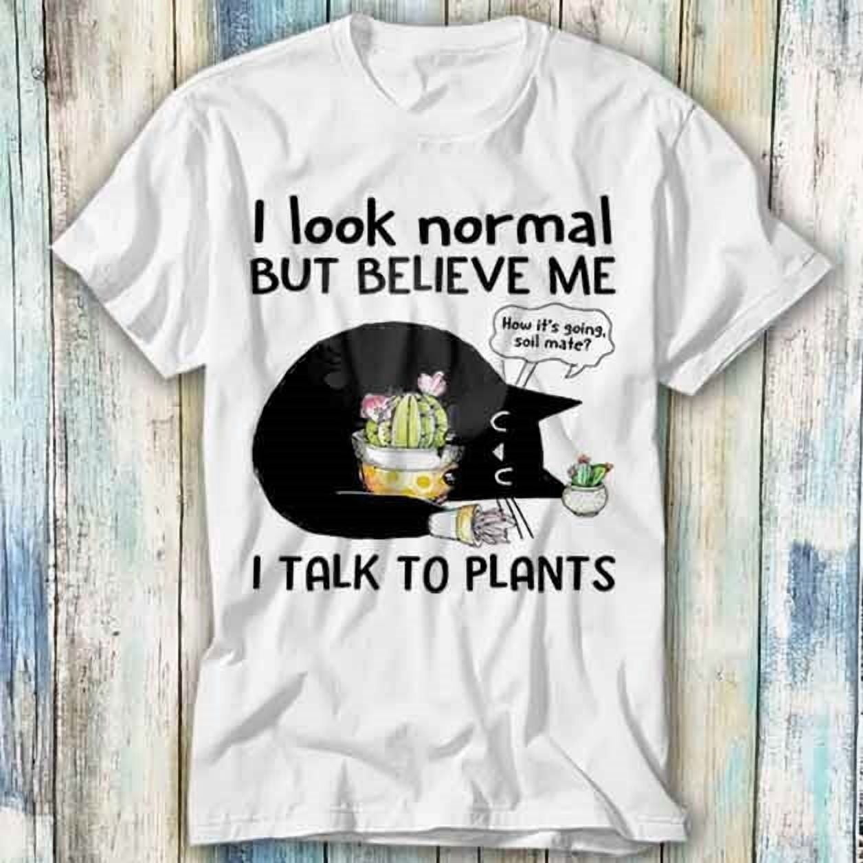 Black Cat I Look Normal But Believe Me I Talk Plants T Shirt Top Tee