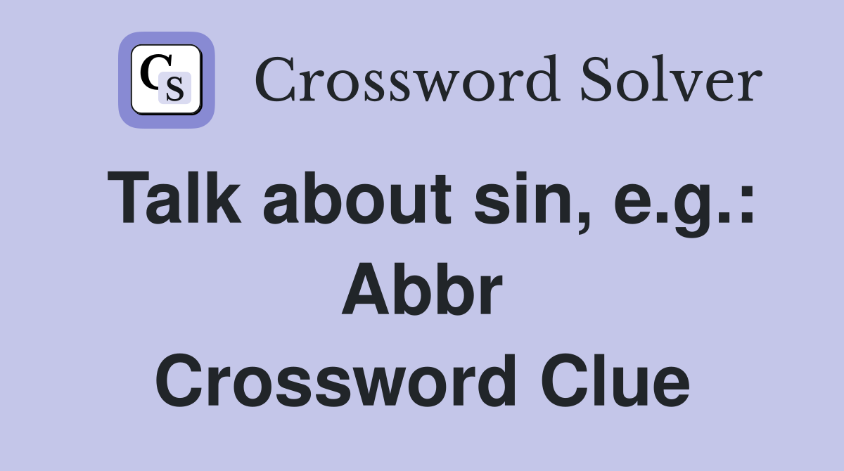 Talk about sin e g : Abbr Crossword Clue Answers Crossword Solver
