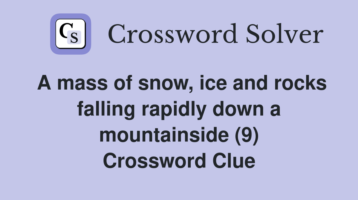 A mass of snow ice and rocks falling rapidly down a mountainside (9
