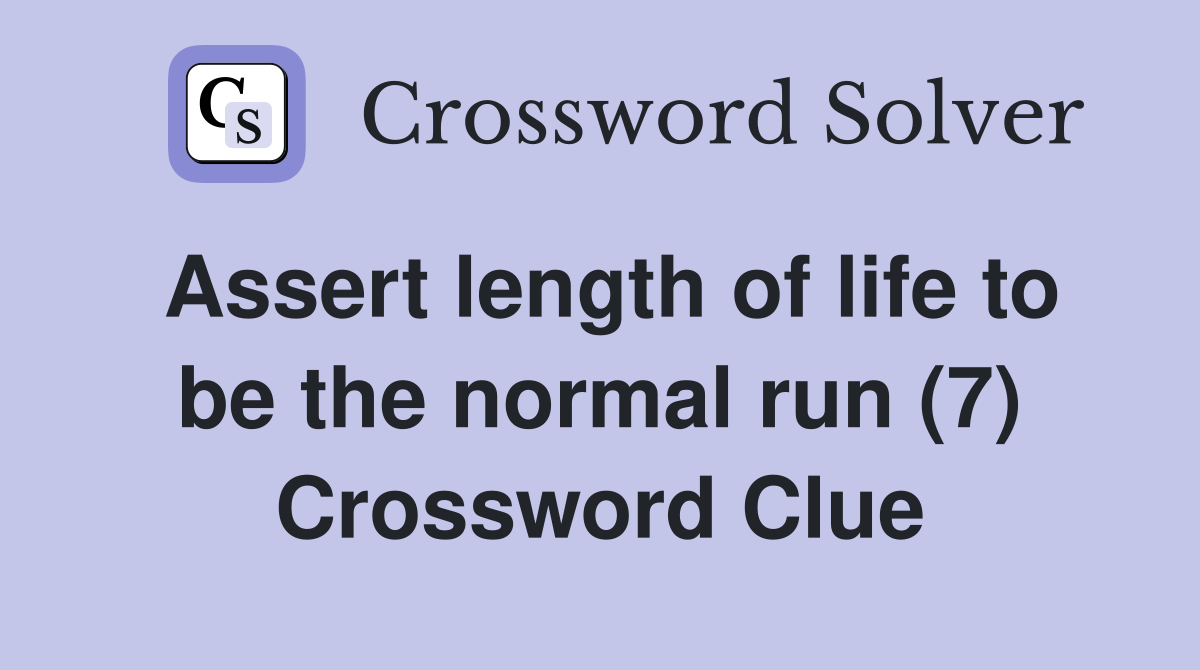 Assert length of life to be the normal run (7) Crossword Clue Answers