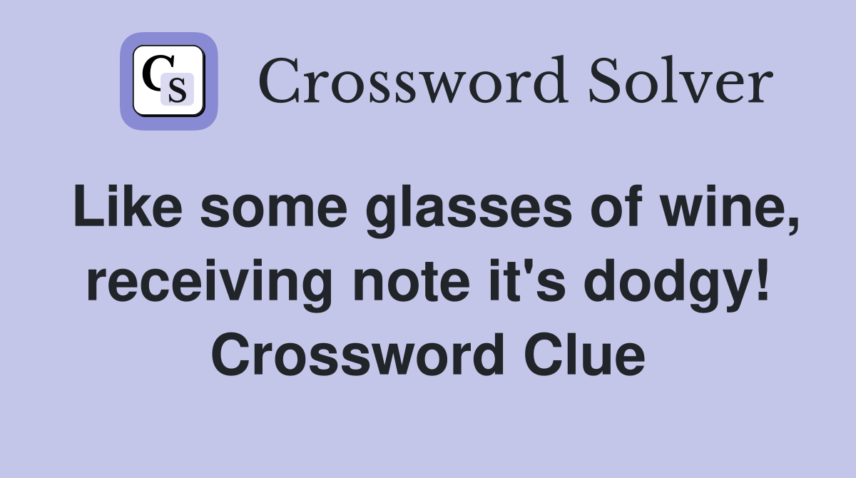 Like some glasses of wine receiving note it s dodgy Crossword Clue