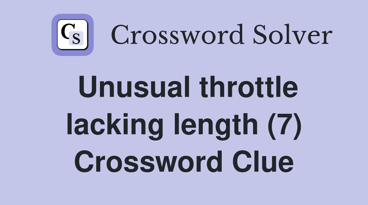 Unusual throttle lacking length (7) Crossword Clue Answers