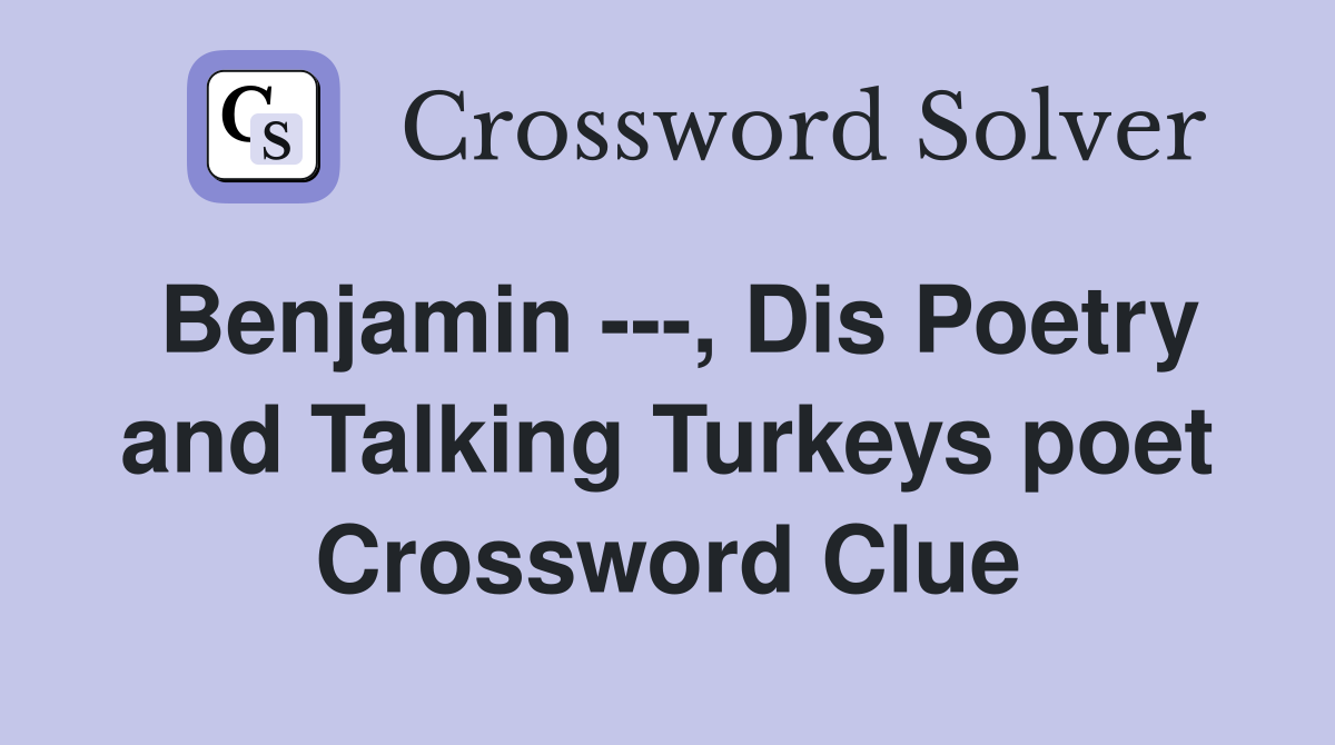 Benjamin Dis Poetry and Talking Turkeys poet Crossword Clue