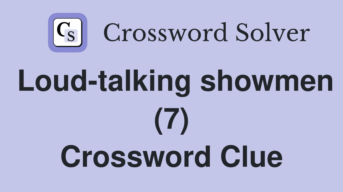 Loud talking showmen (7) Crossword Clue Answers Crossword Solver