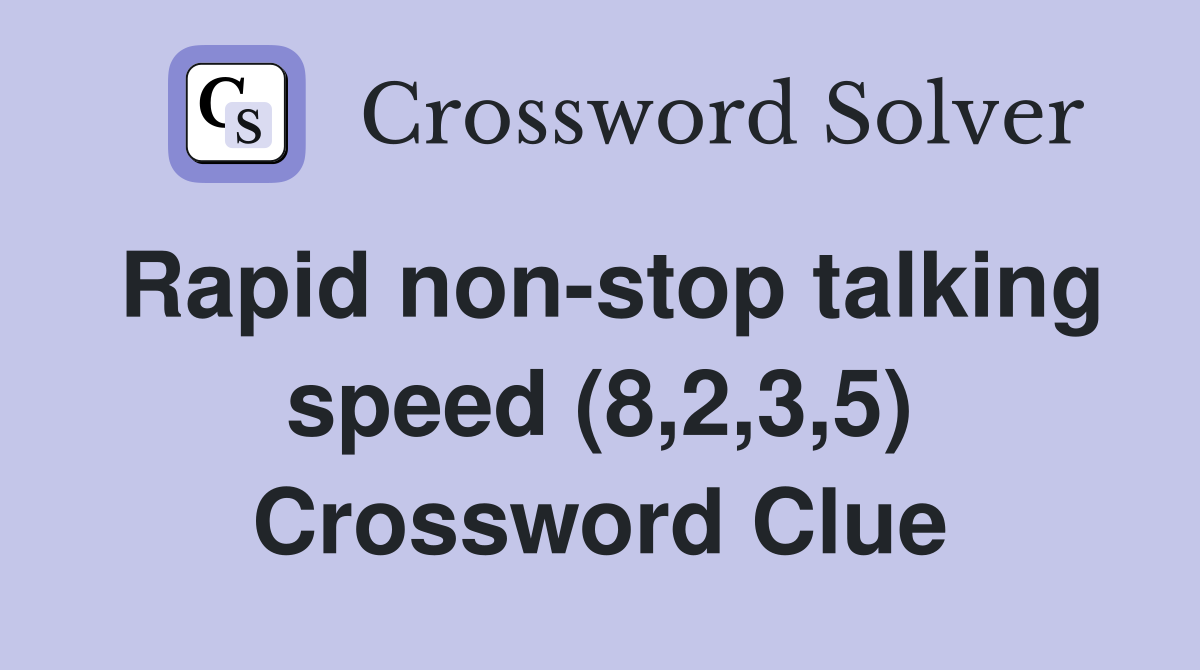 Rapid non stop talking speed (8 2 3 5) Crossword Clue Answers