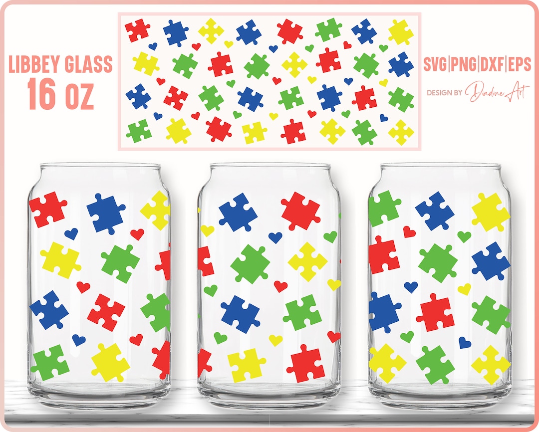 Autism Awareness Can Glass 16oz SVG Autism Puzzle DIY Wrap for Libbey