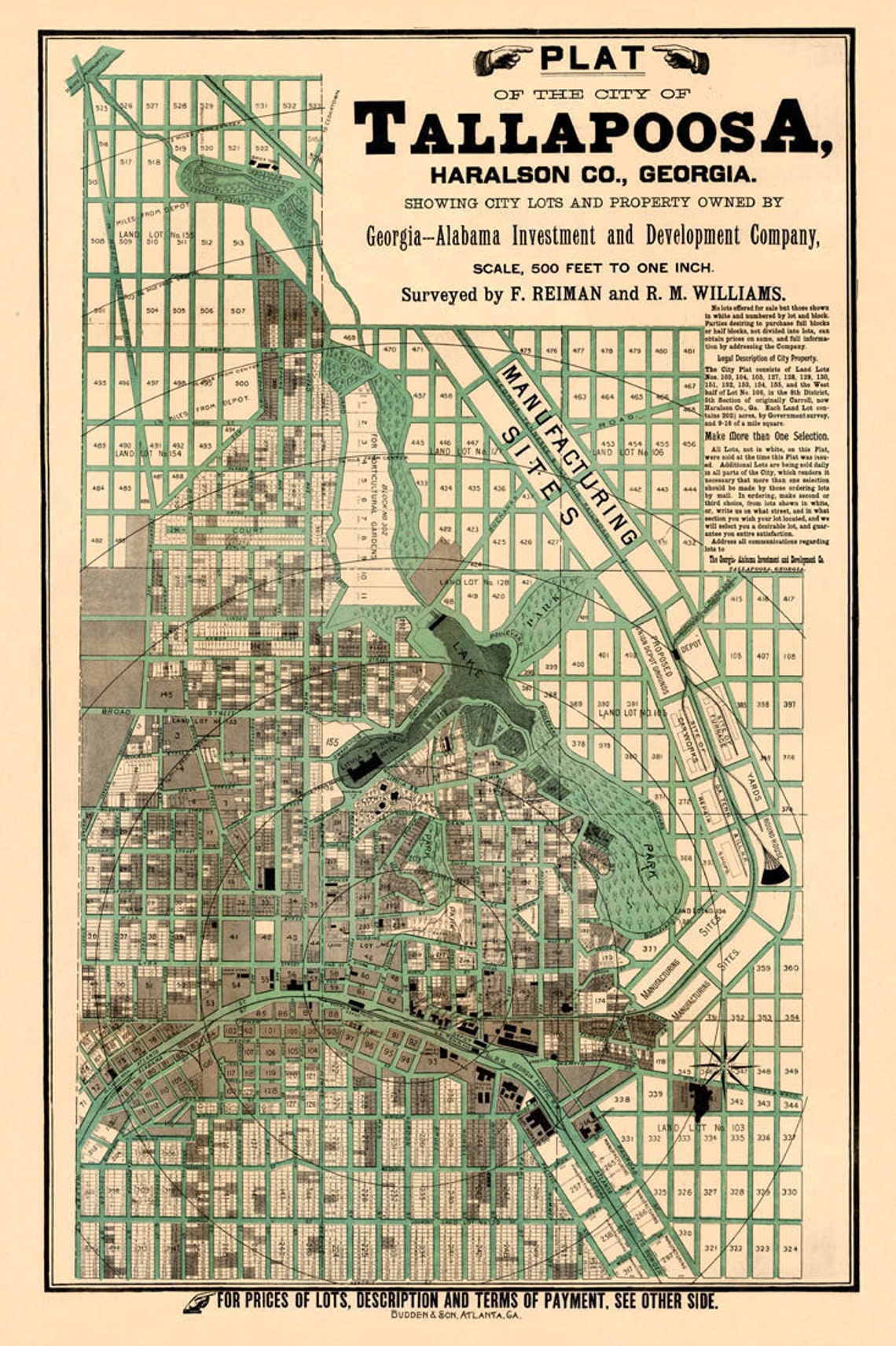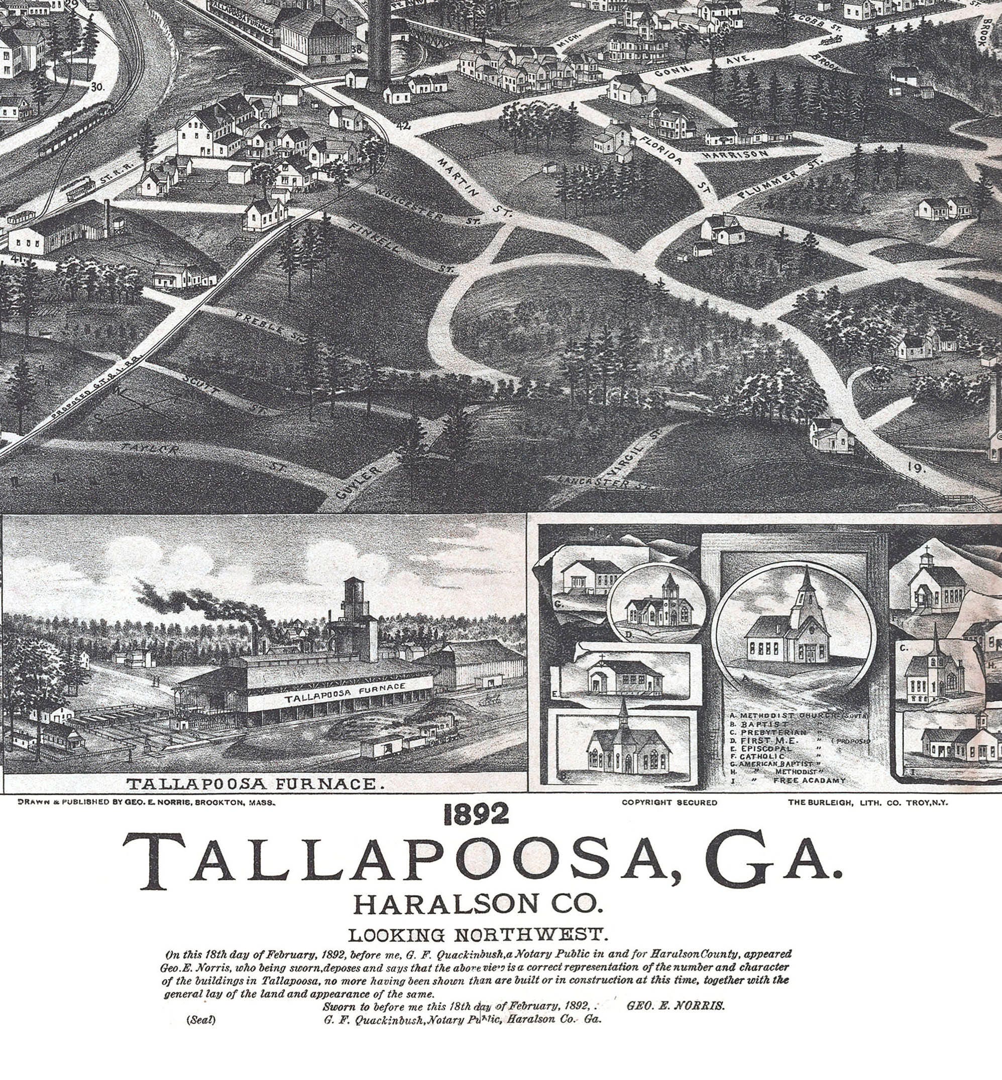 Beautiful bird s eye view map of Tallapoosa Georgia from 1892 KNOWOL