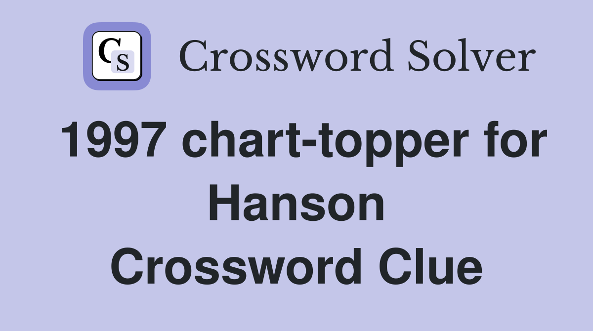 1997 chart topper for Hanson Crossword Clue Answers Crossword Solver