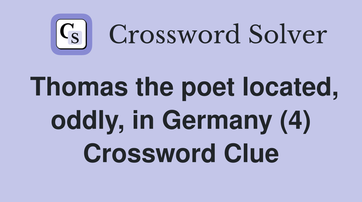 Thomas the poet located oddly in Germany (4) Crossword Clue Answers