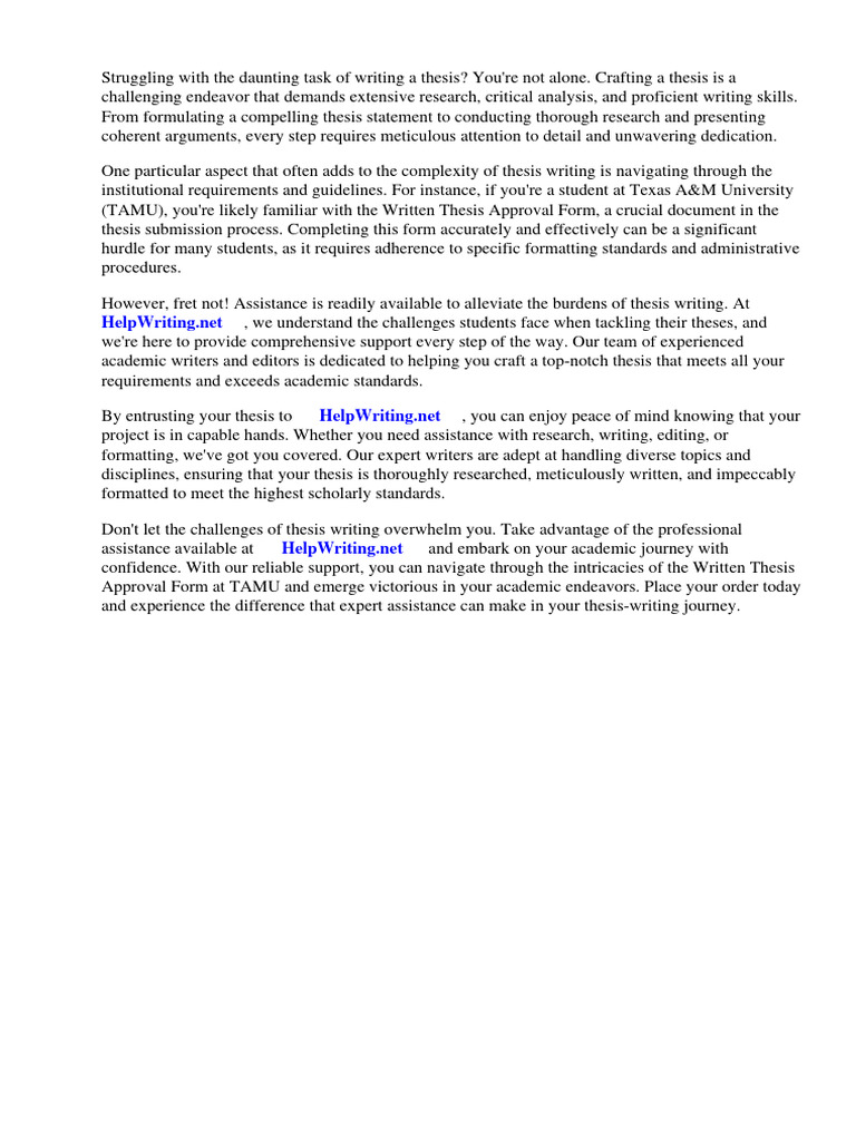 TAMU Thesis Writing Approval Guide PDF Thesis