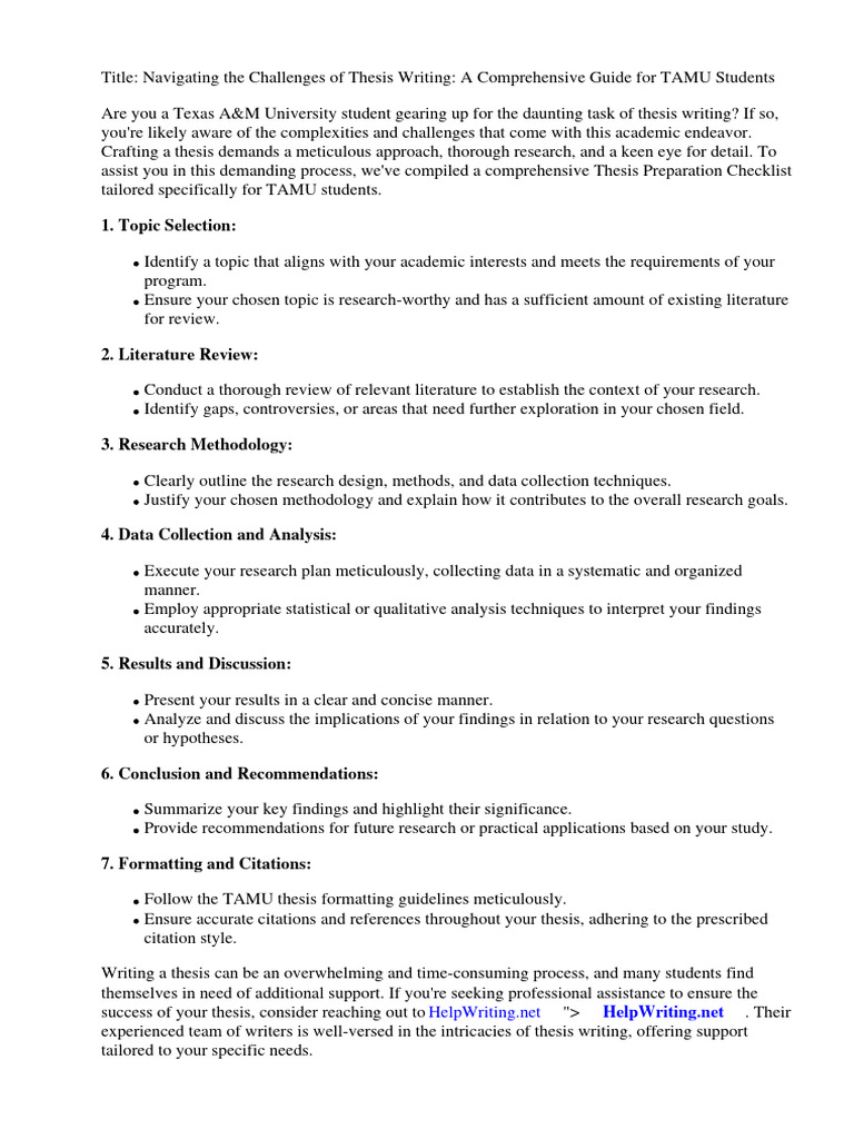 Thesis Preparation Checklist Tamu PDF Thesis Methodology