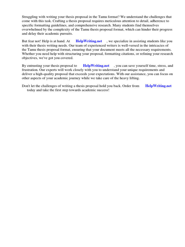 Tamu Thesis Proposal Format PDF