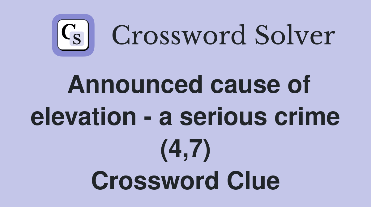 Announced cause of elevation a serious crime (4 7) Crossword Clue