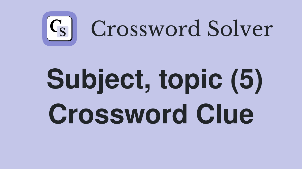 Subject topic (5) Crossword Clue Answers Crossword Solver