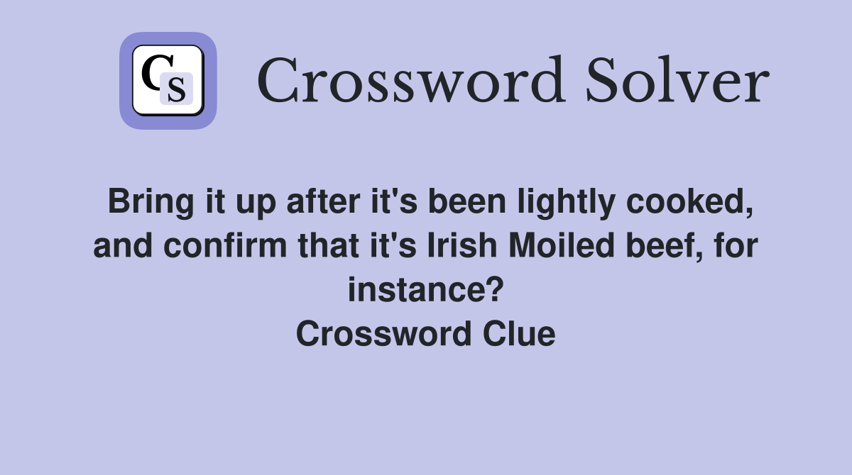 Bring it up after it #39 s been lightly cooked and confirm that it #39 s Irish