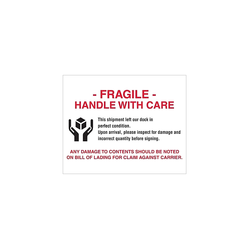 Tape Logic Labels quot Fragile Handle With Care quot 8 x 10 quot Red/White/Black