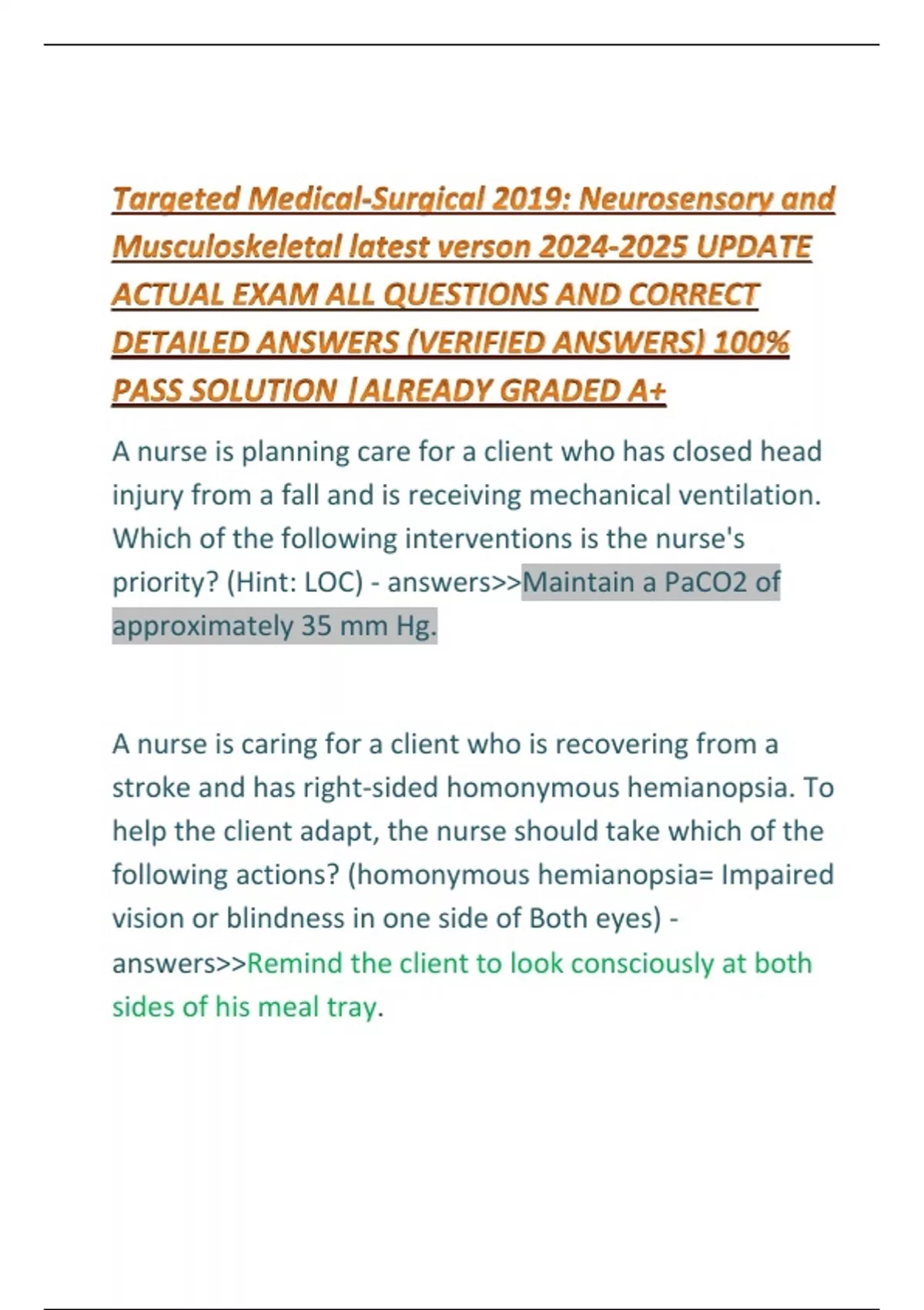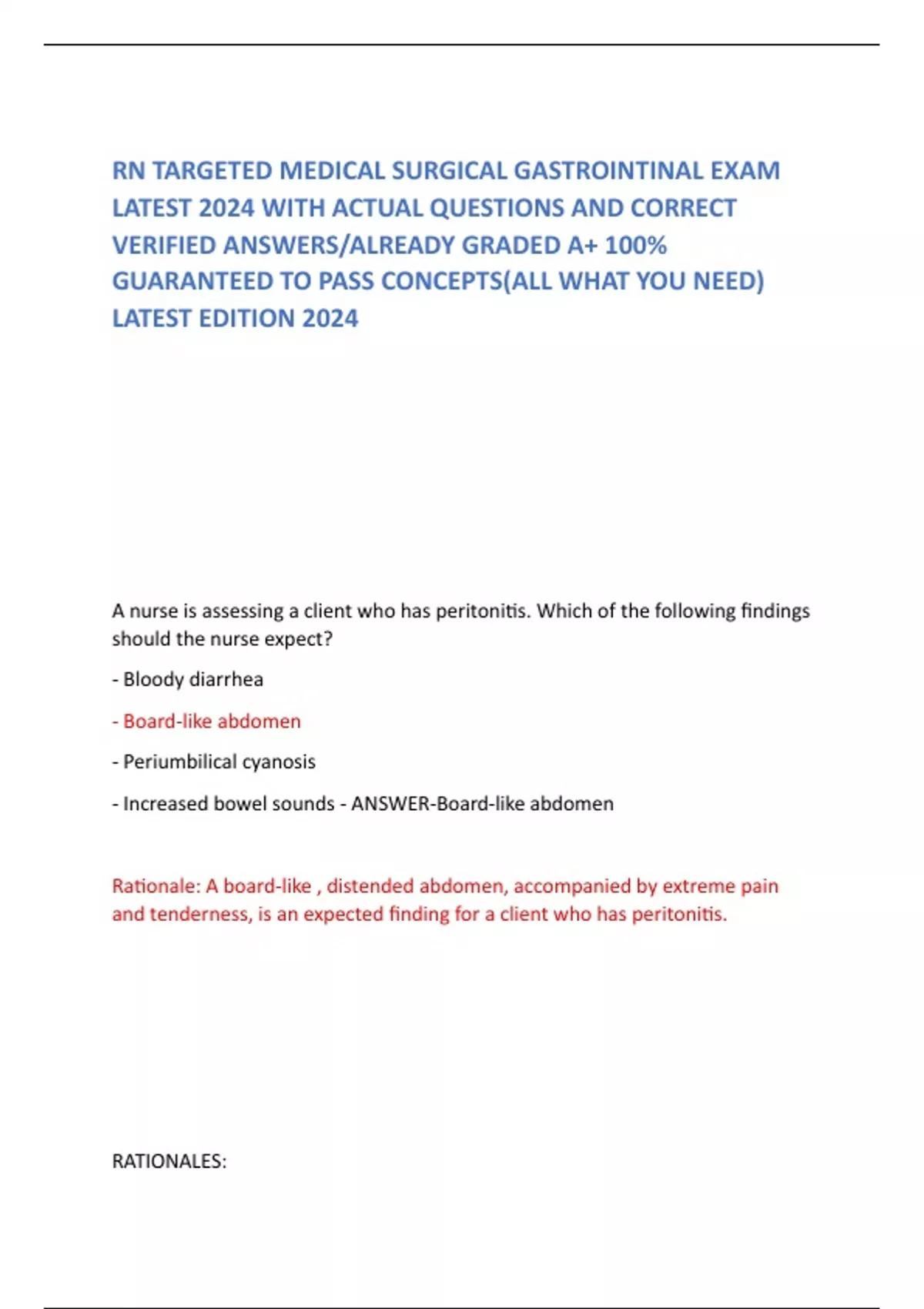RN TARGETED MEDICAL SURGICAL GASTROINTINAL EXAM LATEST 2024 WITH ACTUAL