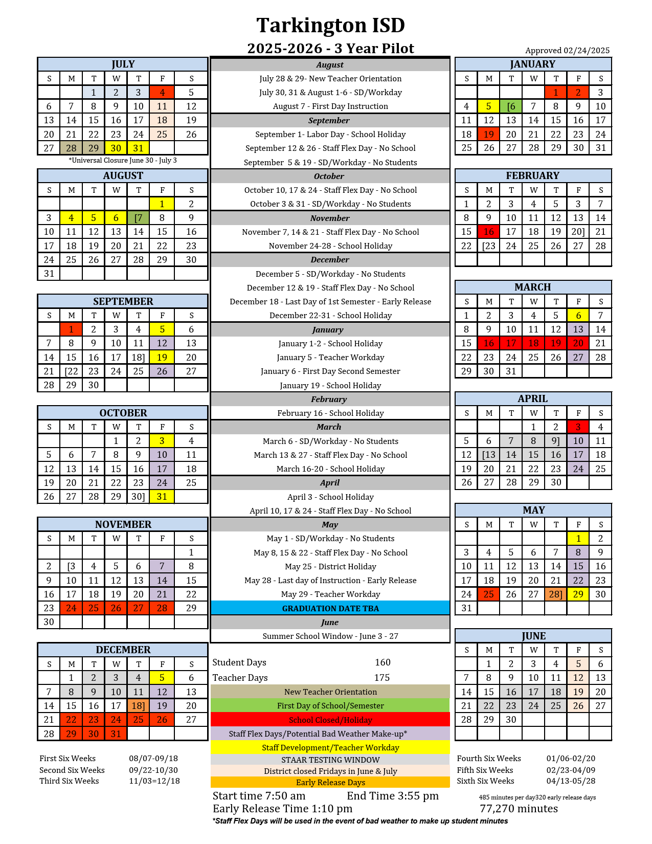 Tarkington ISD School Calendar 25 26 PDF EduCounty