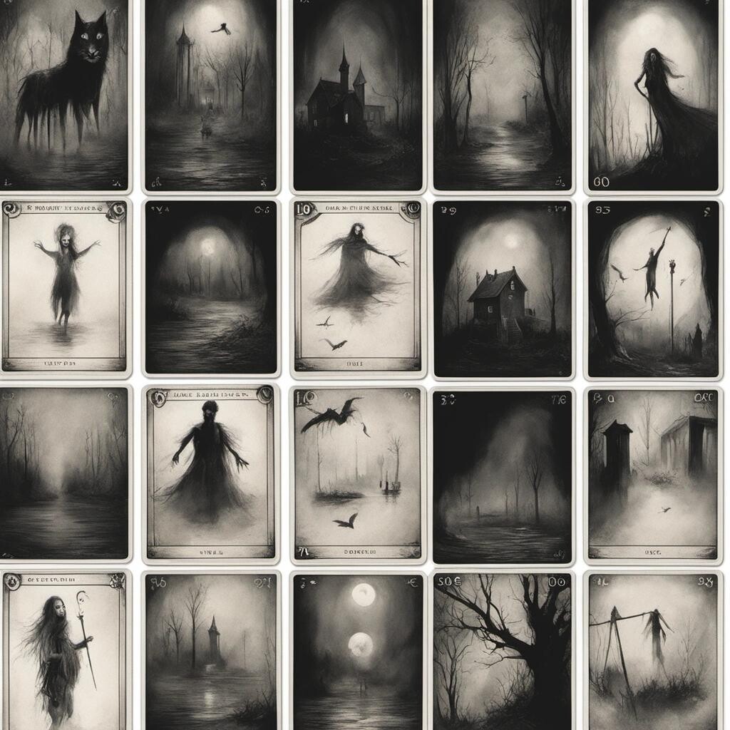 featured: a spread of tarot cards with illustrations inspired by Scary