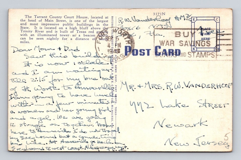 Fort Worth TX Texas Tarrant County Court House Antique Vintage c1943