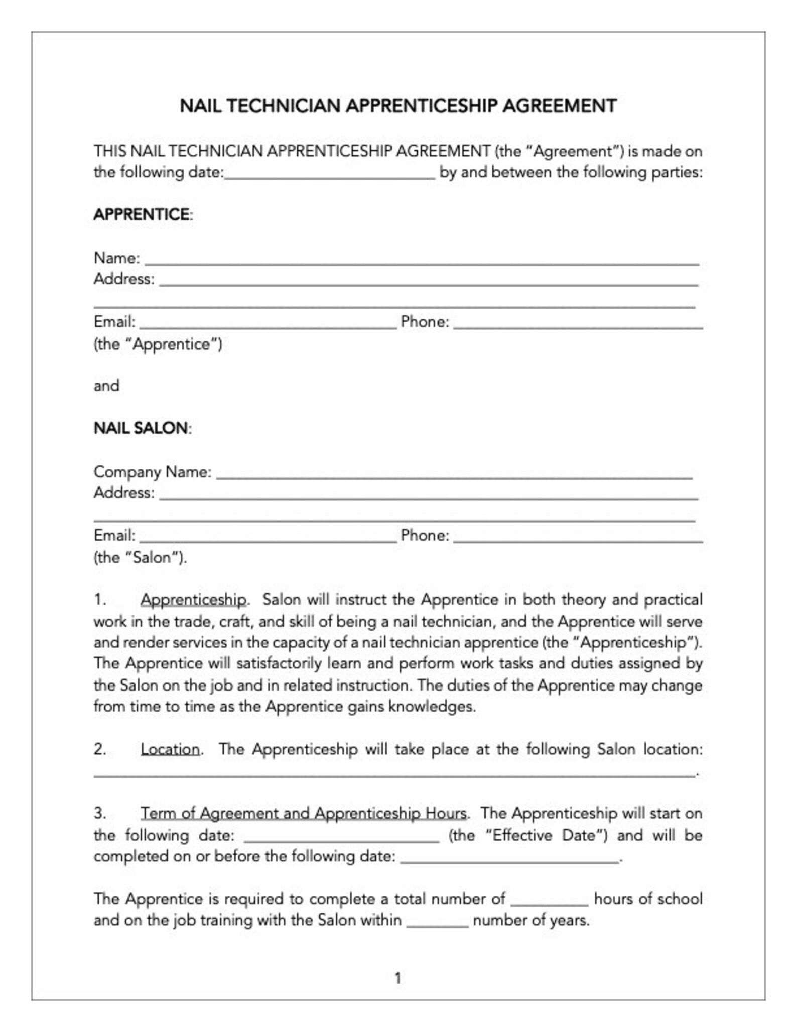 Nail Tech Apprenticeship Agreement Nail Technician Contract Nail