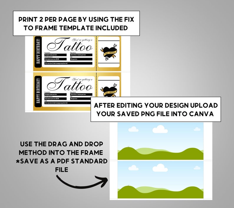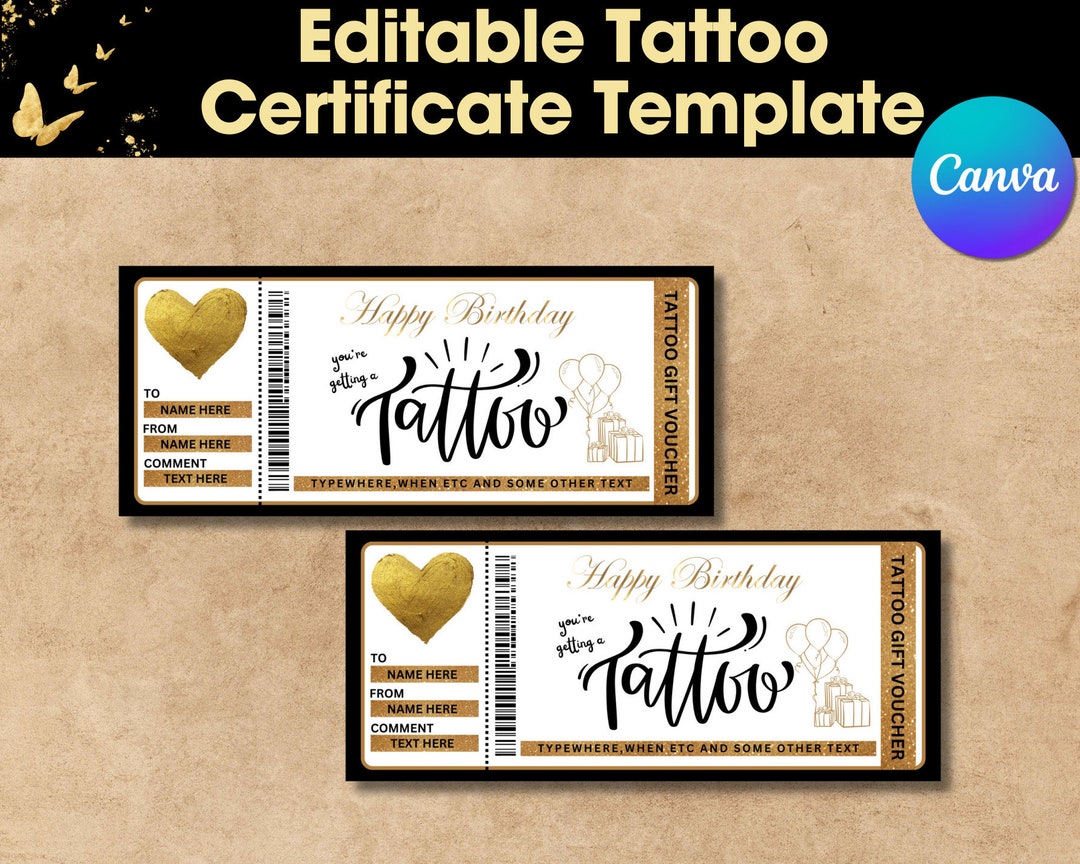 Editable Tattoo Certificate Template Birthday Gift Card Printable