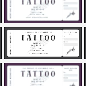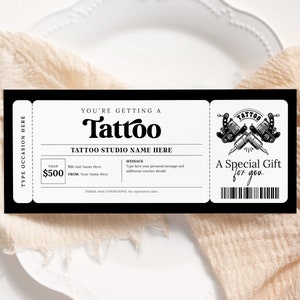 Tattoo Voucher Editable Tattoo Ticket Tattoo Gift Certificate Tattoo
