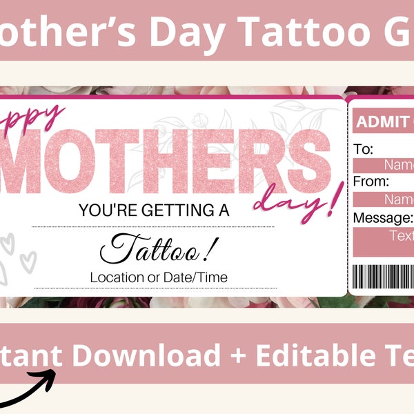 Mothers Day Tattoo Certificate Template Gift Card Voucher Ticket Coupon