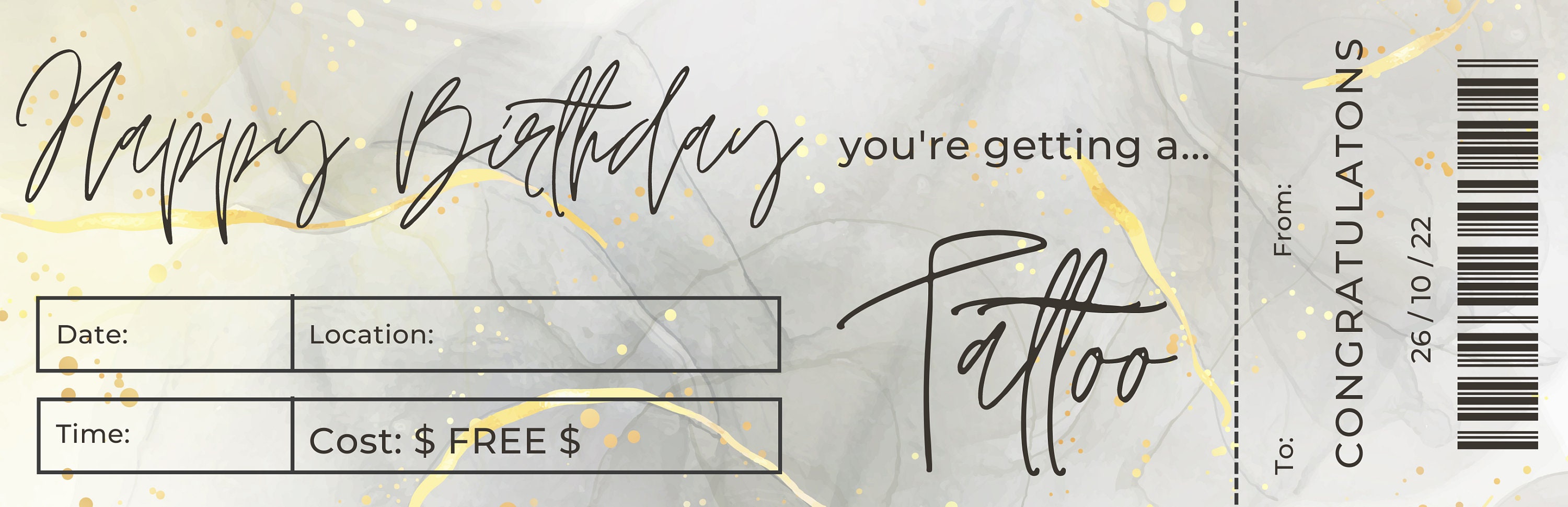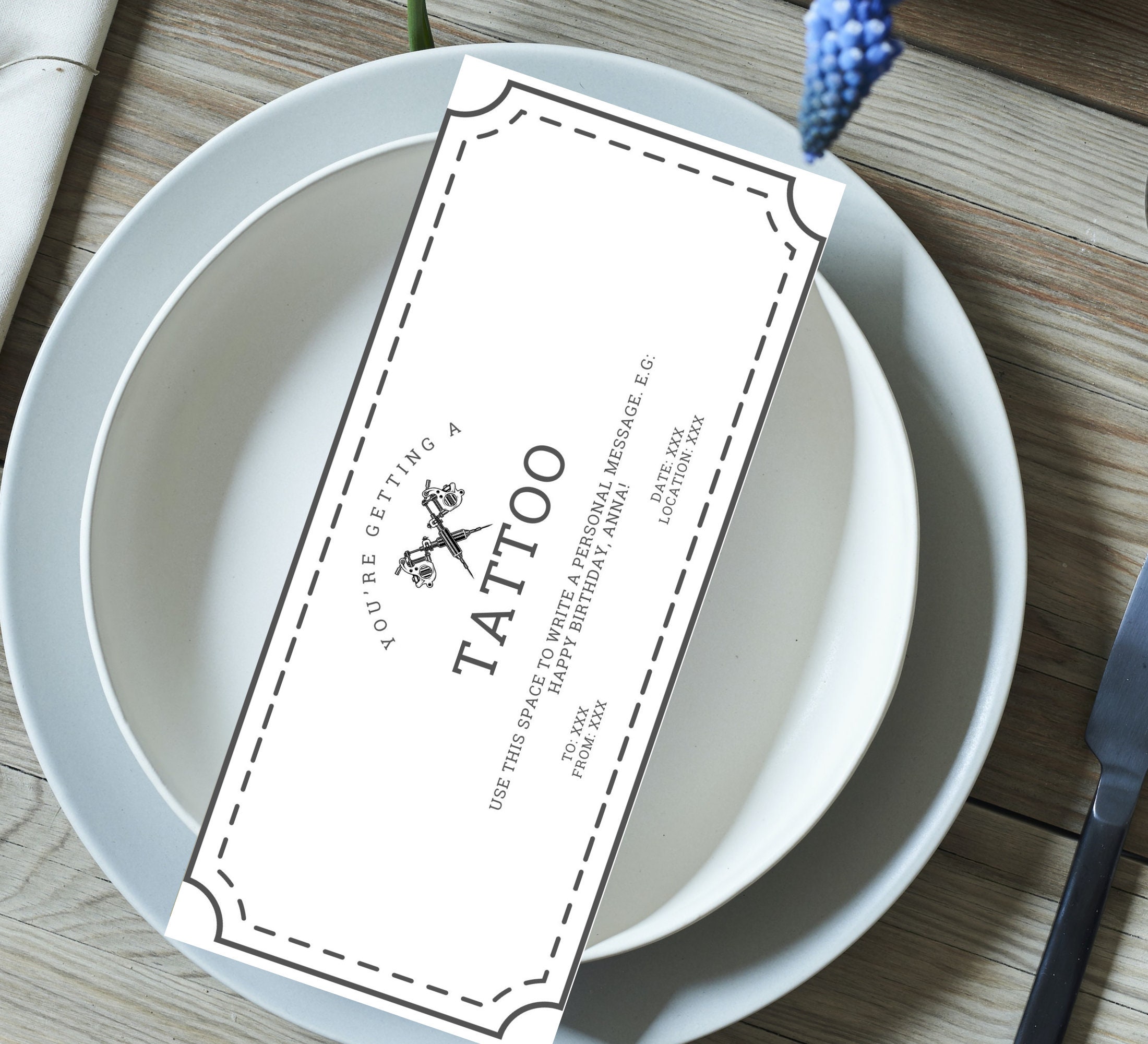 Tattoo Ticket Gift Certificate Personalised Coupon Tattoo Gift Voucher
