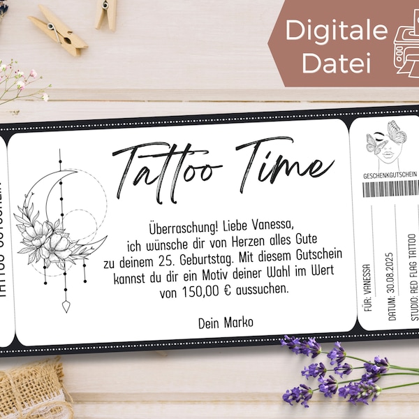 Benutzerdefinierte Tattoo Geschenk Gutschein Canva Editierbare Geschenk