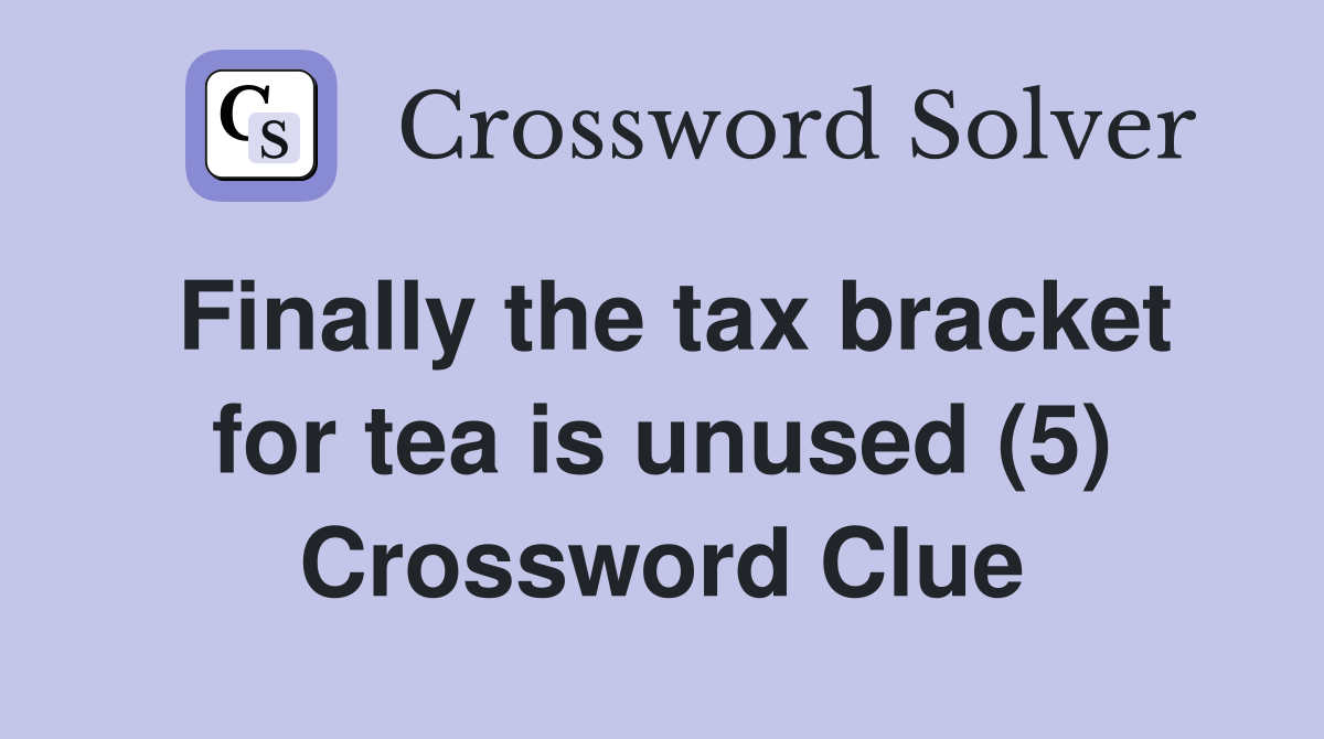 Finally the tax bracket for tea is unused (5) Crossword Clue Answers