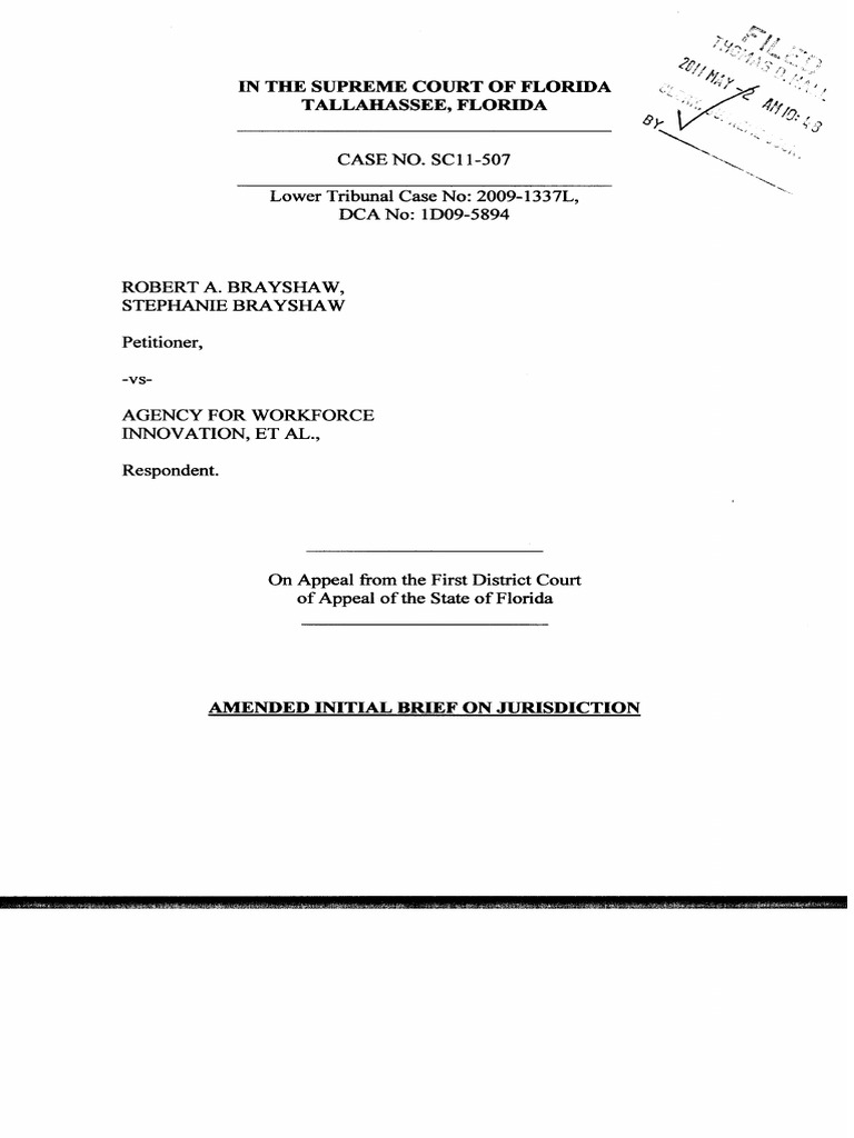 Supreme Court of Florida The Case of Brayshaw #39 s vs Agency of