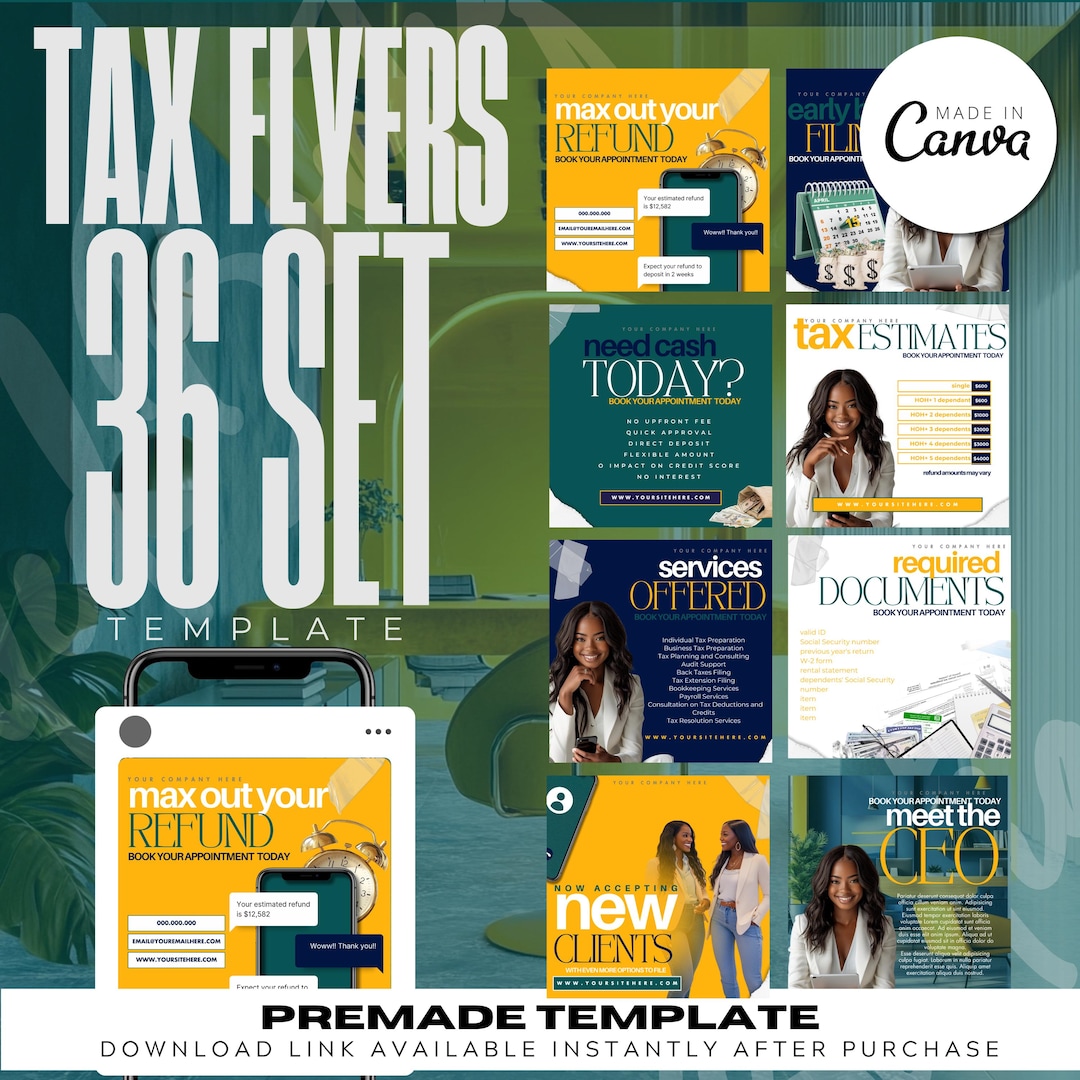 4 2024 Tax Prep Flyers Bundle Template Editable Tax Specialist Flyer