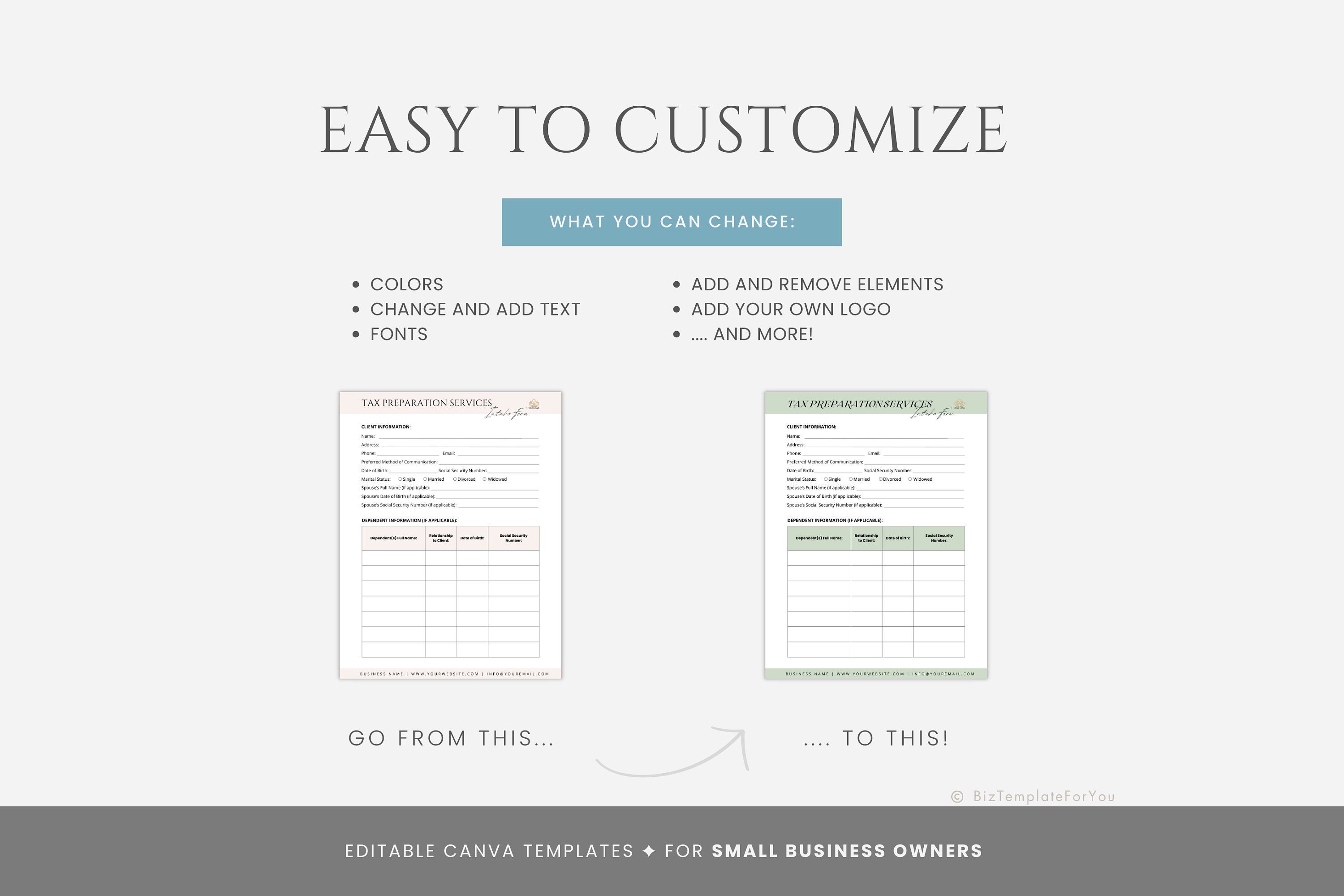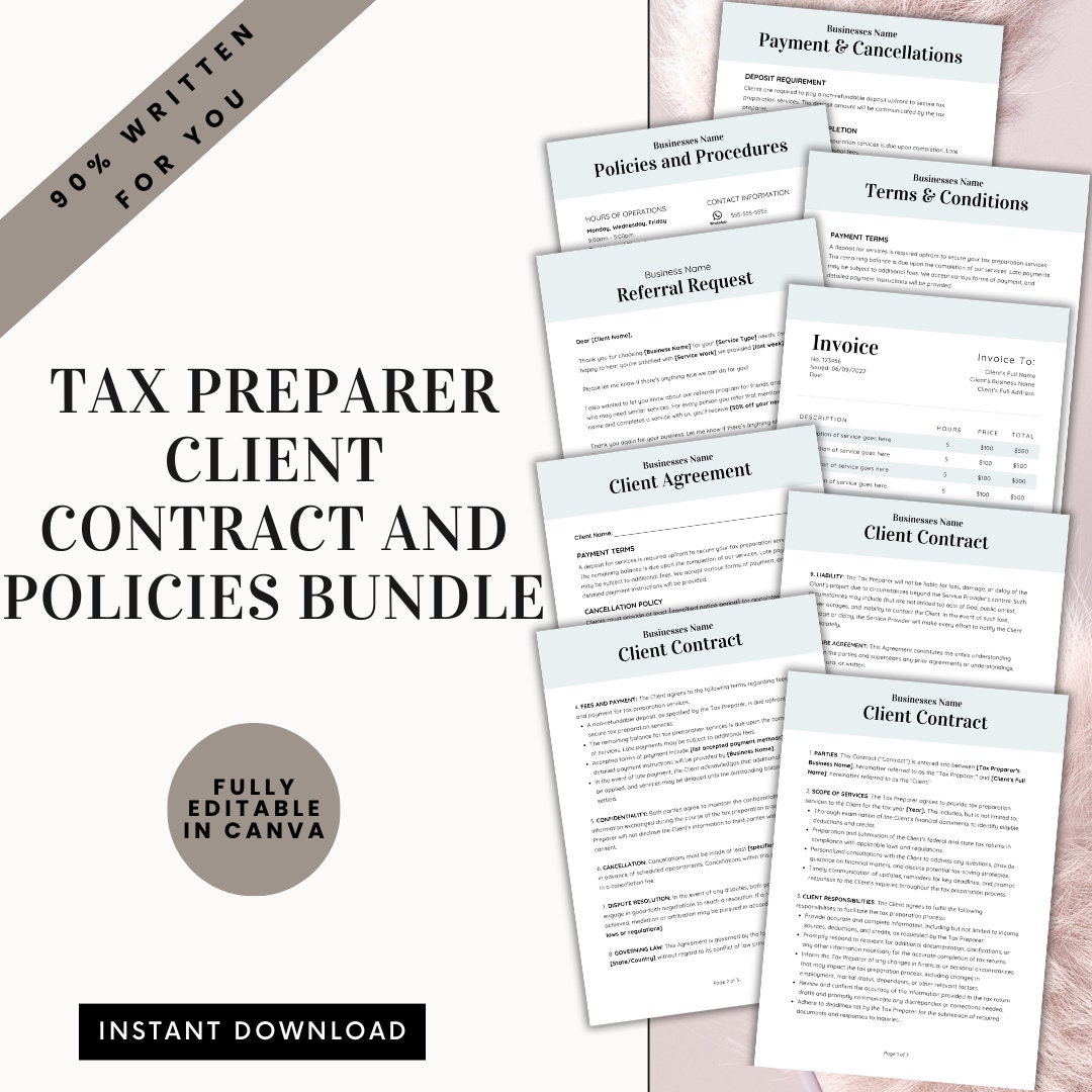 Tax Preparer New Client Contract Template and Business Forms Bundle