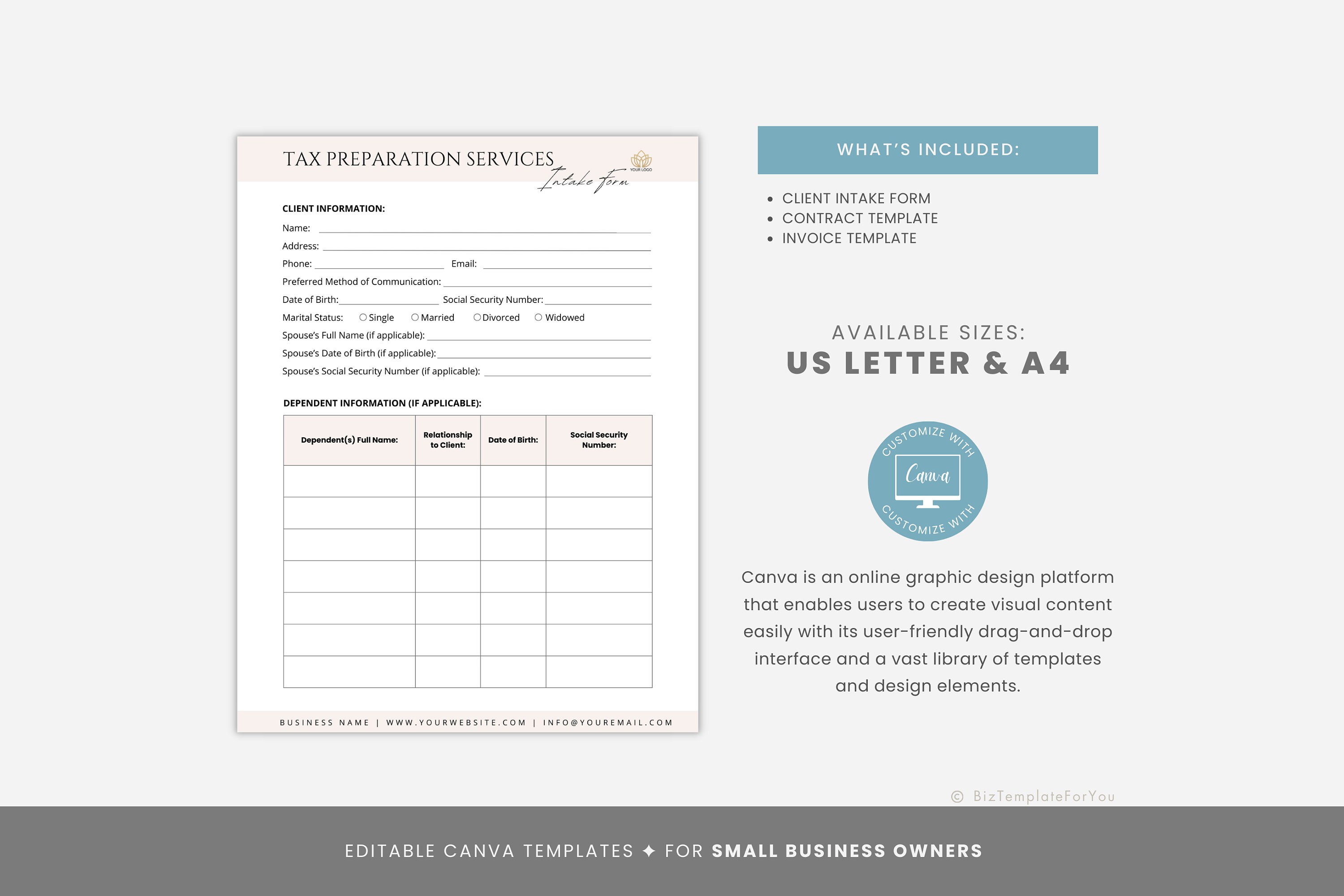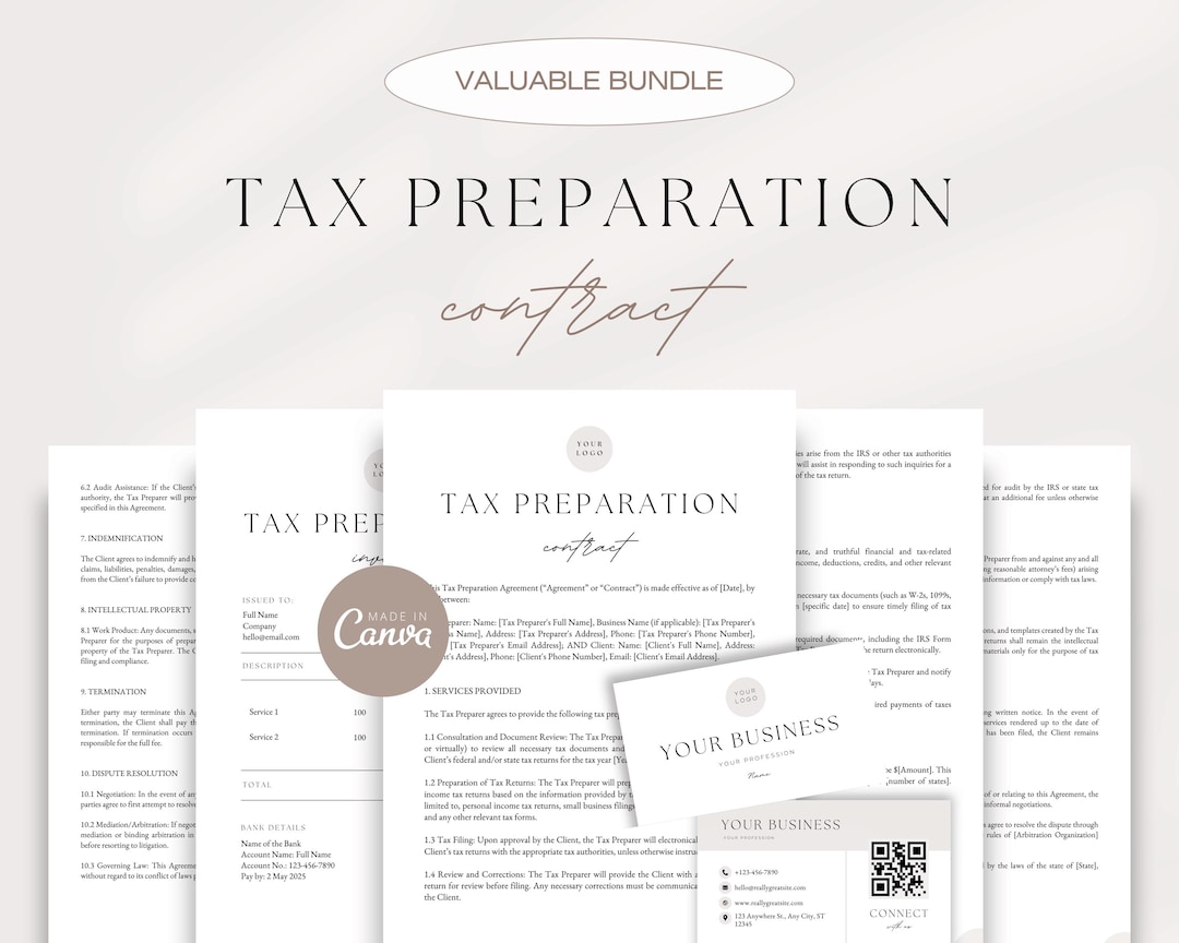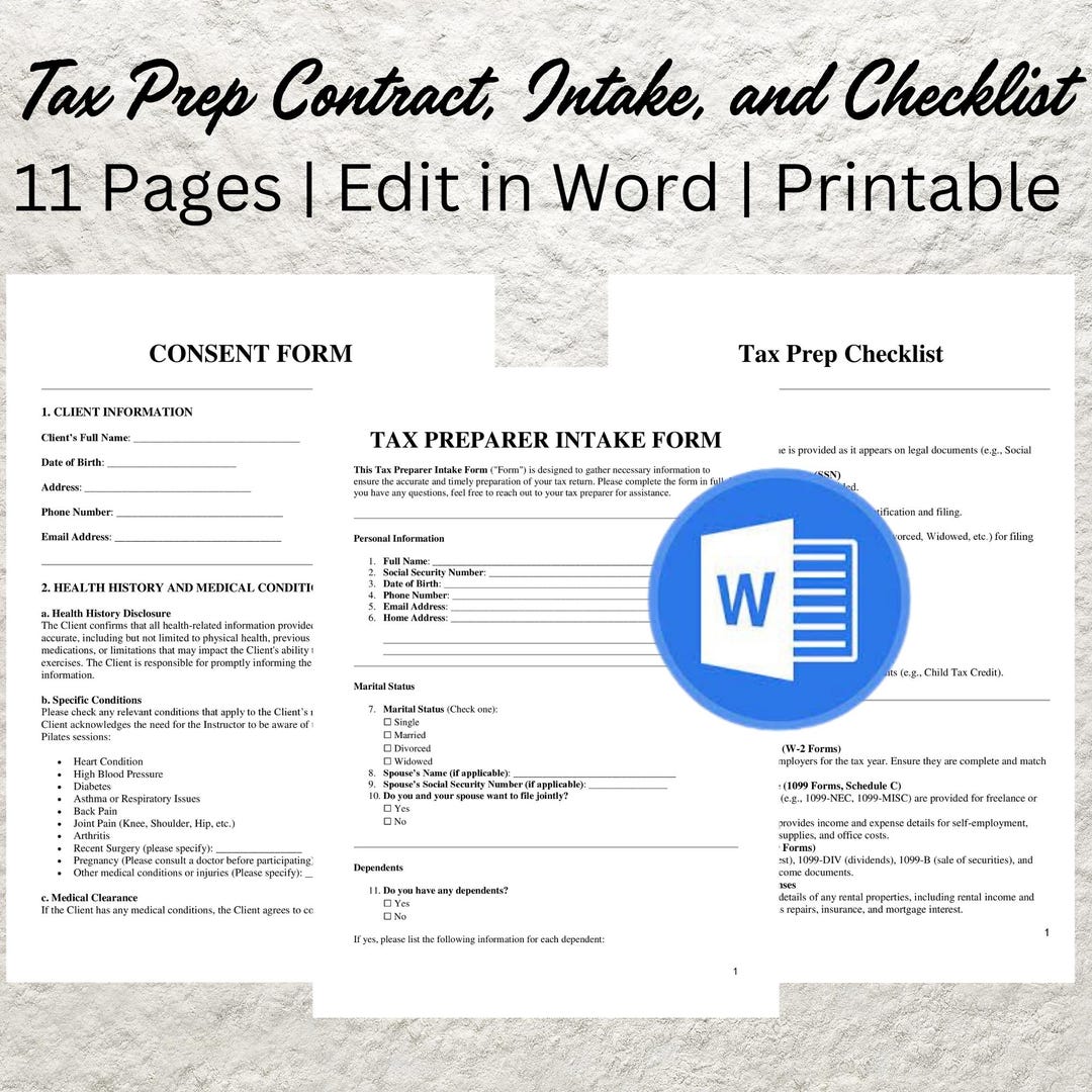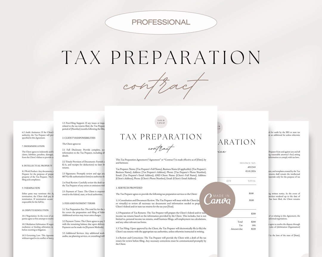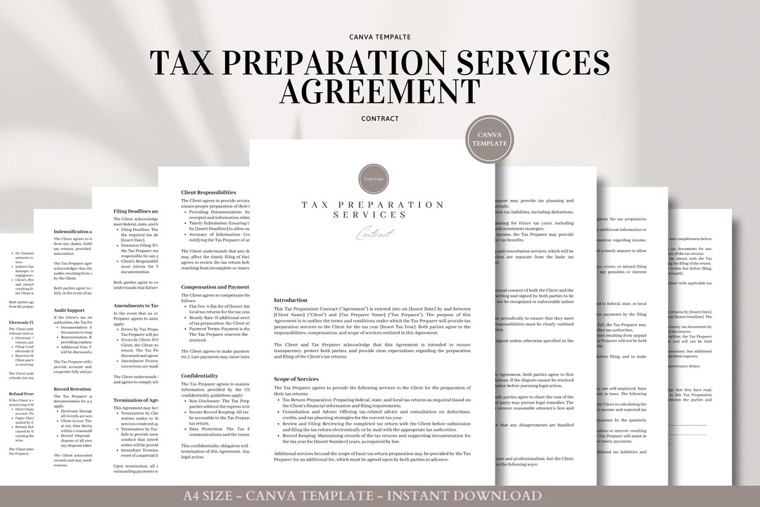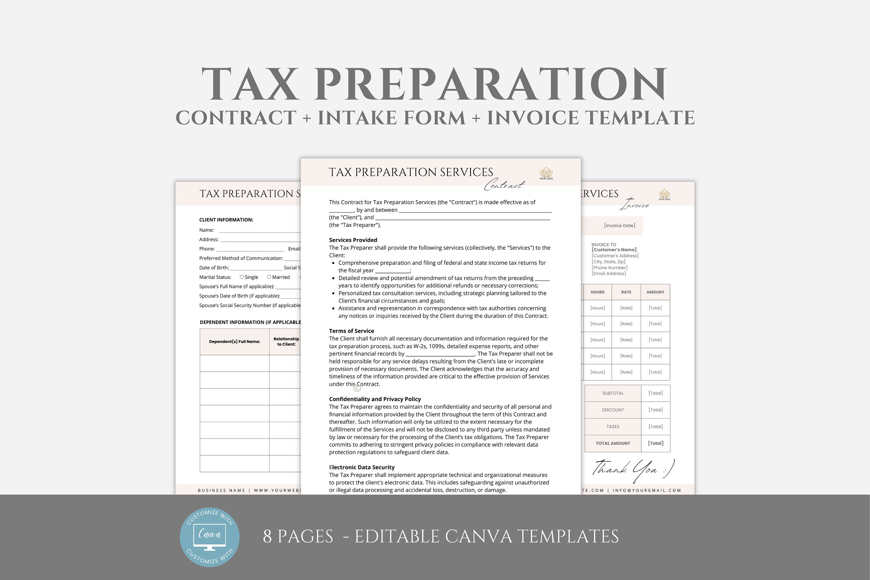 Tax Preparation Contract Template Editable Client Intake and Filing