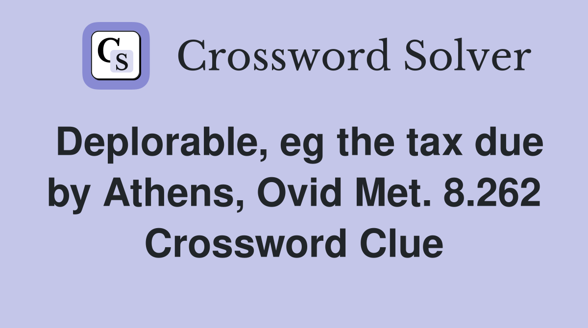 Deplorable eg the tax due by Athens Ovid Met 8 262 Crossword Clue