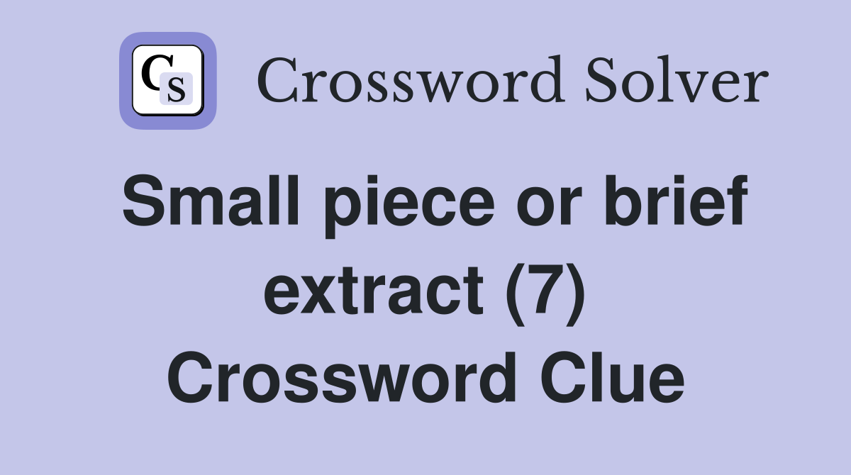 Small piece or brief extract (7) Crossword Clue Answers Crossword