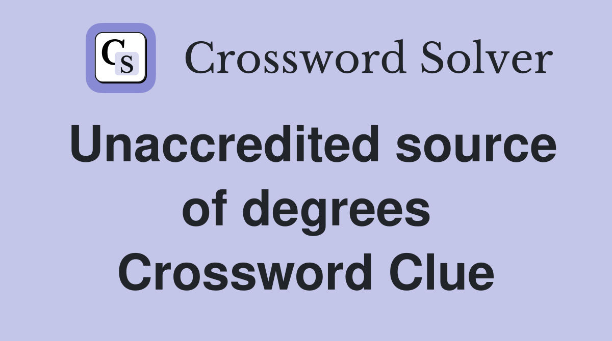 Unaccredited source of degrees Crossword Clue Answers Crossword Solver