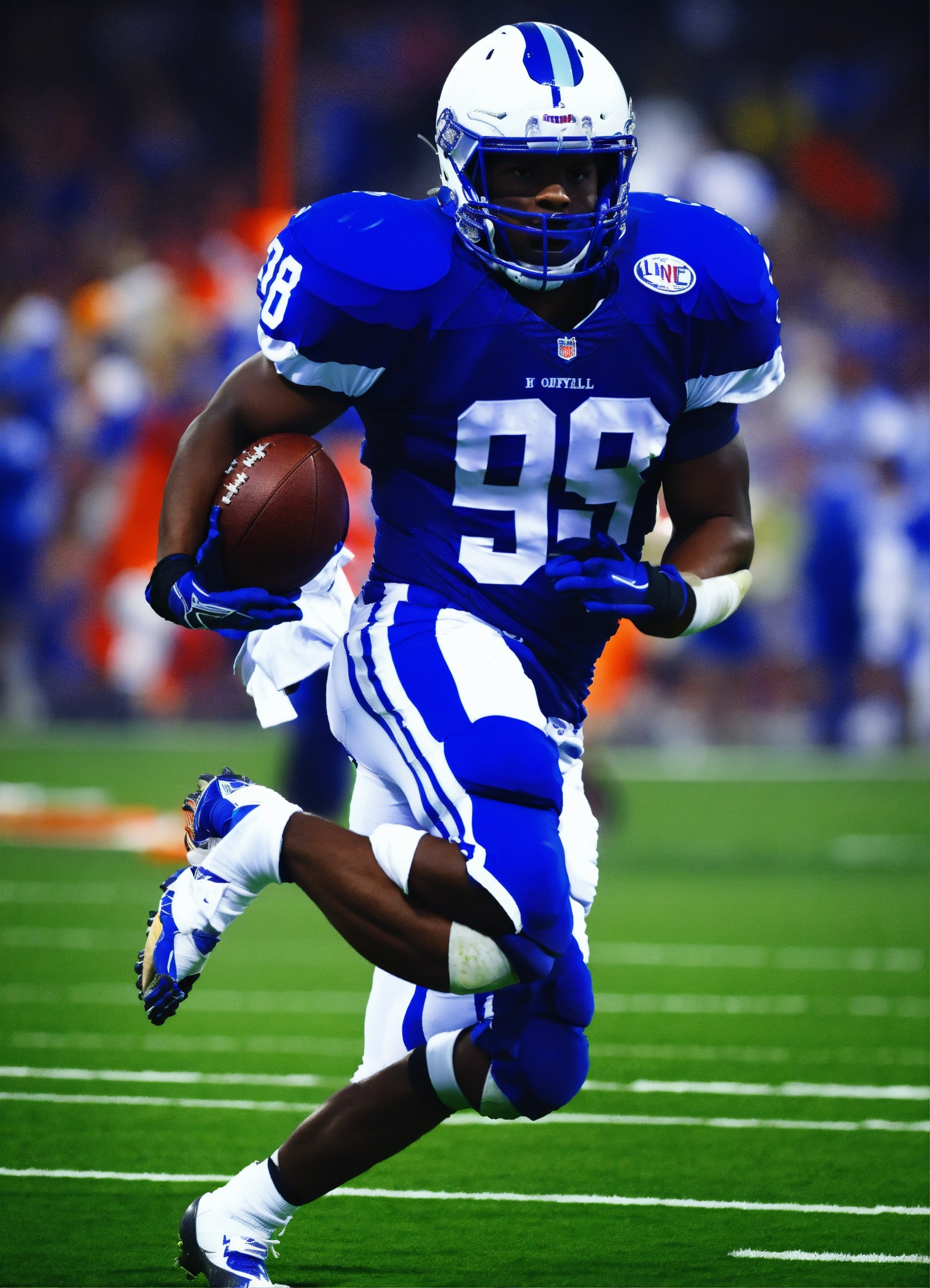 Lexica Football player line backer lightining team team colors royal