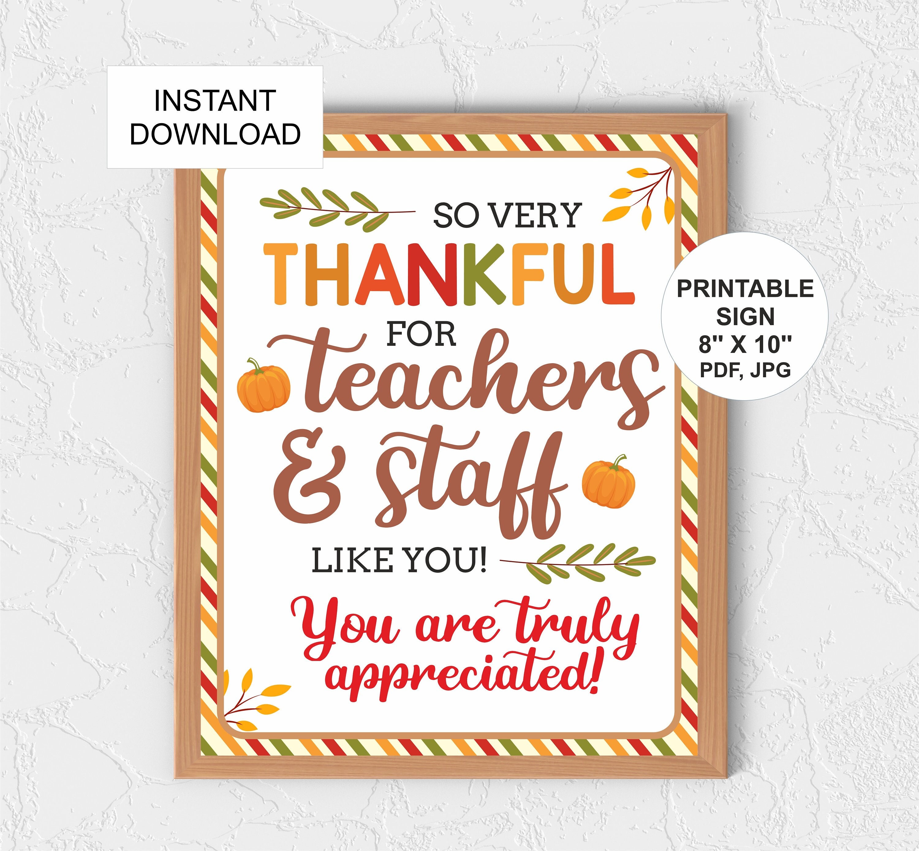 Teacher Appreciation Sign Printable Thankful for You Fall Etsy