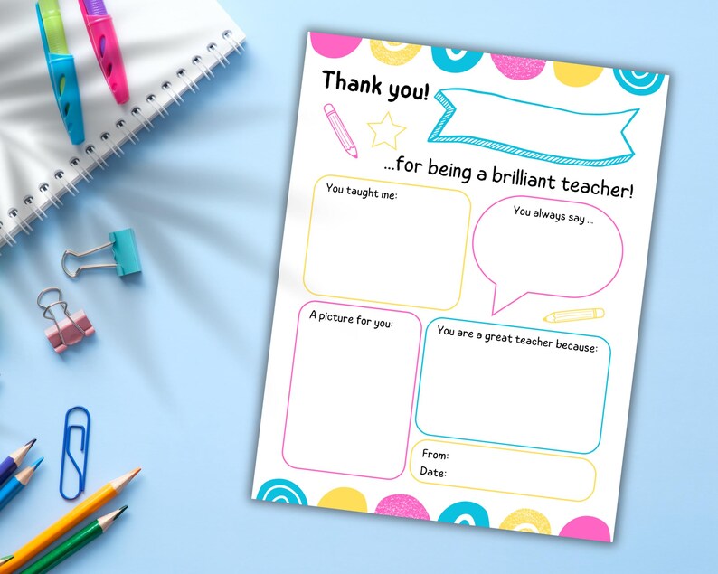Teacher Thank You Note Printable Printable Calendars AT A GLANCE