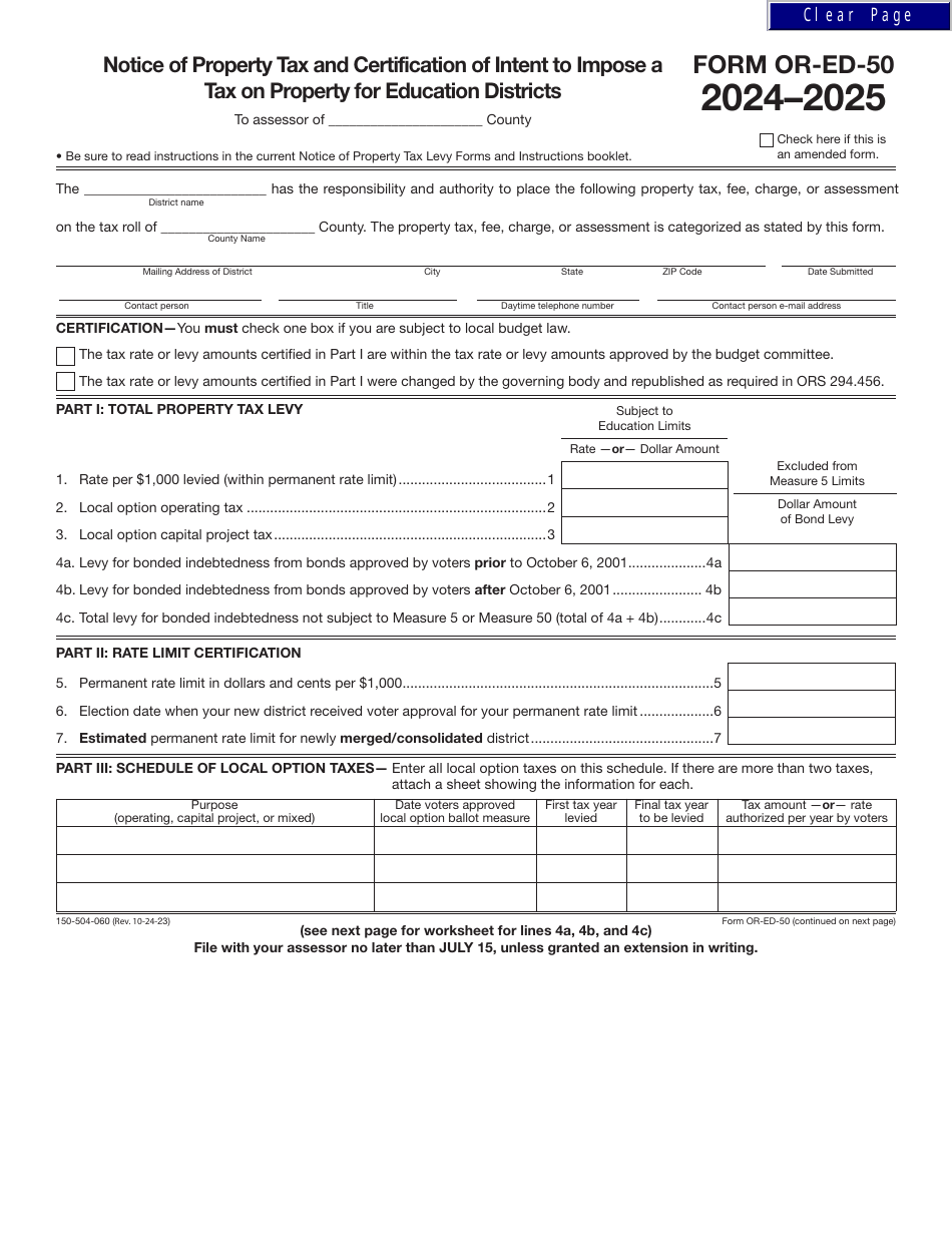Form OR ED 50 (150 504 060) Download Fillable PDF or Fill Online Notice