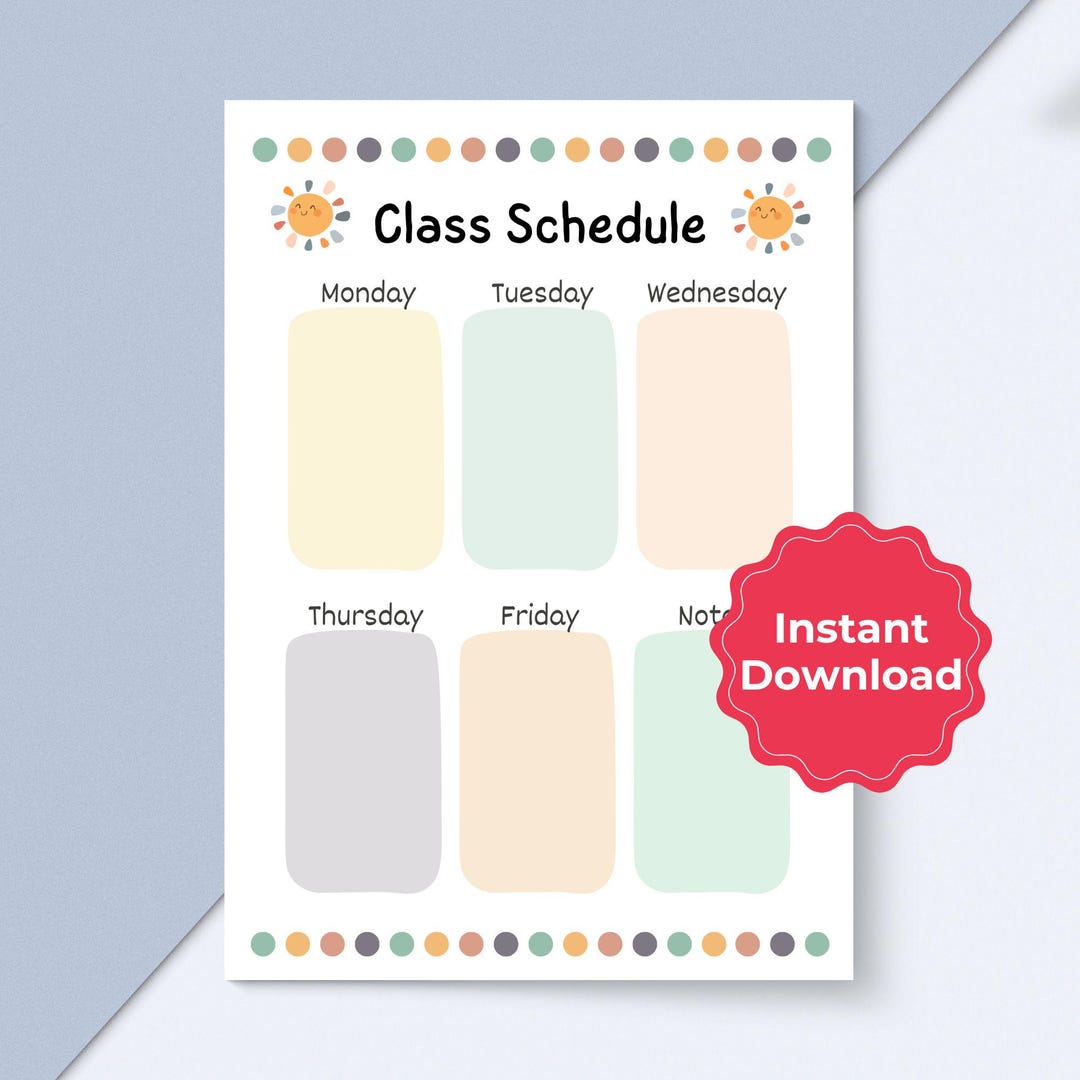 Class Schedule Template Printable Class Schedule Class Time Blocking PDF