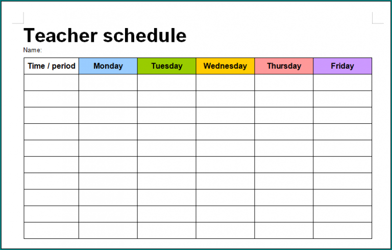 Classroom Schedule Template Printable Classroom Schedule Template PDF