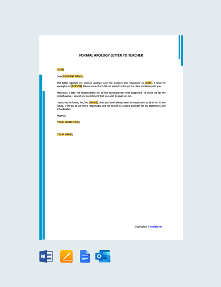 Apology Letter to Teacher Template Google Docs Word Apple Pages