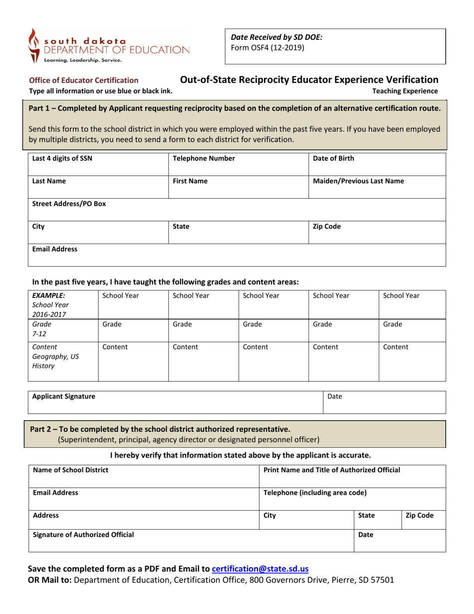 Form OSF4 Download Fillable PDF or Fill Online Out of State Reciprocity