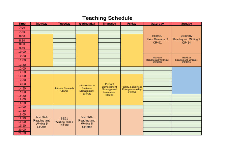 Teaching Form Teaching Schedule Excel Template And Google Sheets File
